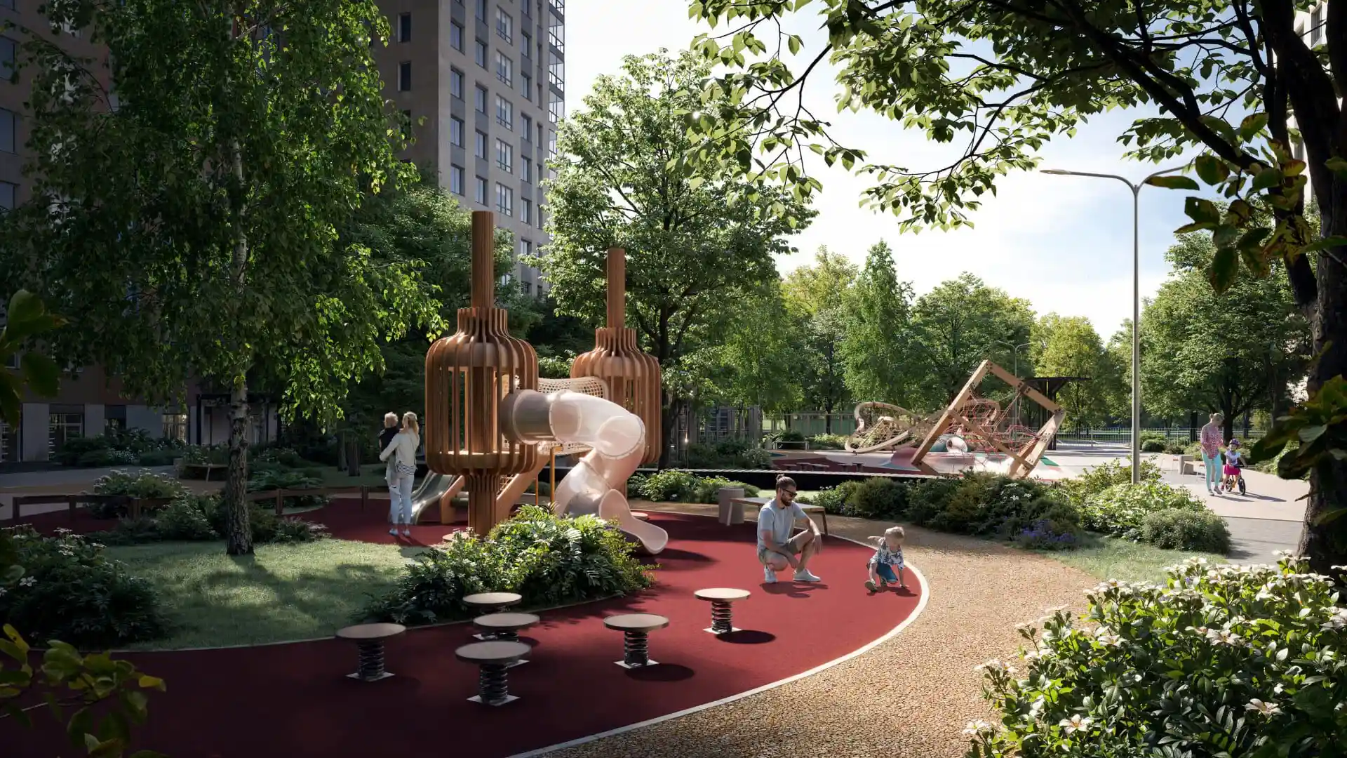 Инфраструктура комплекса продумана с учётом потребностей разных возрастных групп. На территории появится школа на 1 775 мест и четыре детских сада, рассчитанных в общей сложности на 1 170 воспитанников. Для отдыха и досуга предусмотрен собственный парк, бульвар с умной подсветкой и Wi‑Fi, а также летний кинотеатр под открытым небом. Особого внимания заслуживает комьюнити‑центр — многофункциональное пространство для творчества, работы, общения, занятий йогой и танцами, проведения мастер‑классов и дополнительного образования детей.