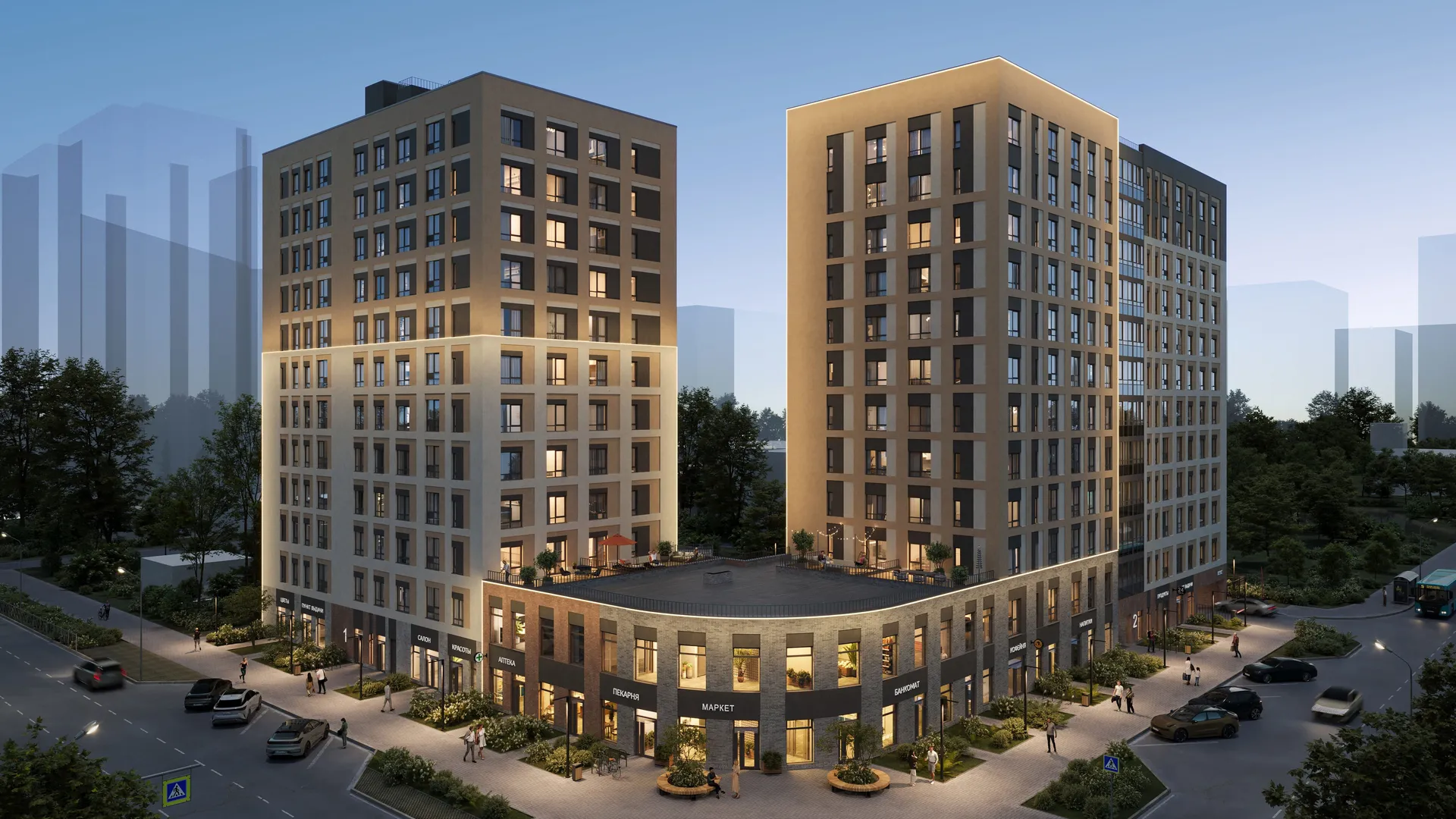 На первых этажах размещены коммерческие помещения: магазины, кофейни, аптеки, пункты выдачи заказов.
