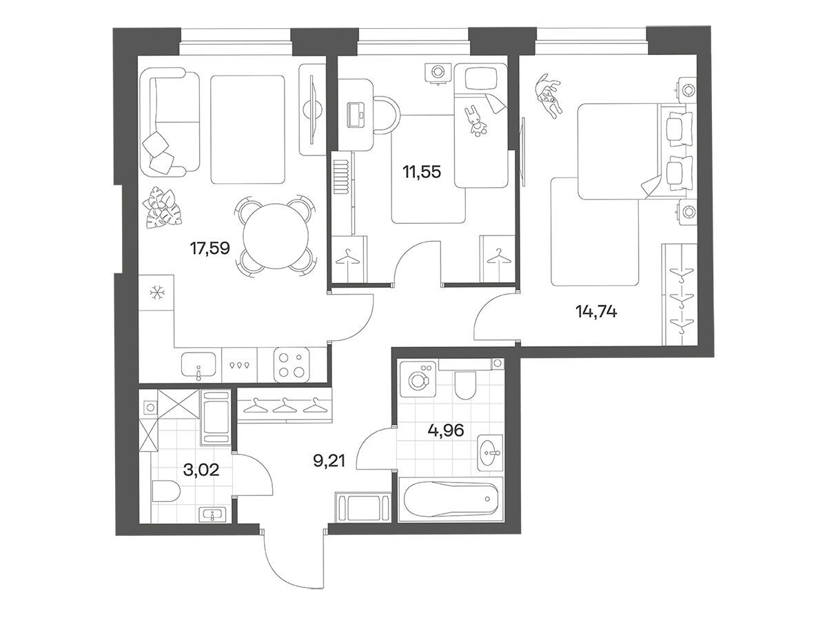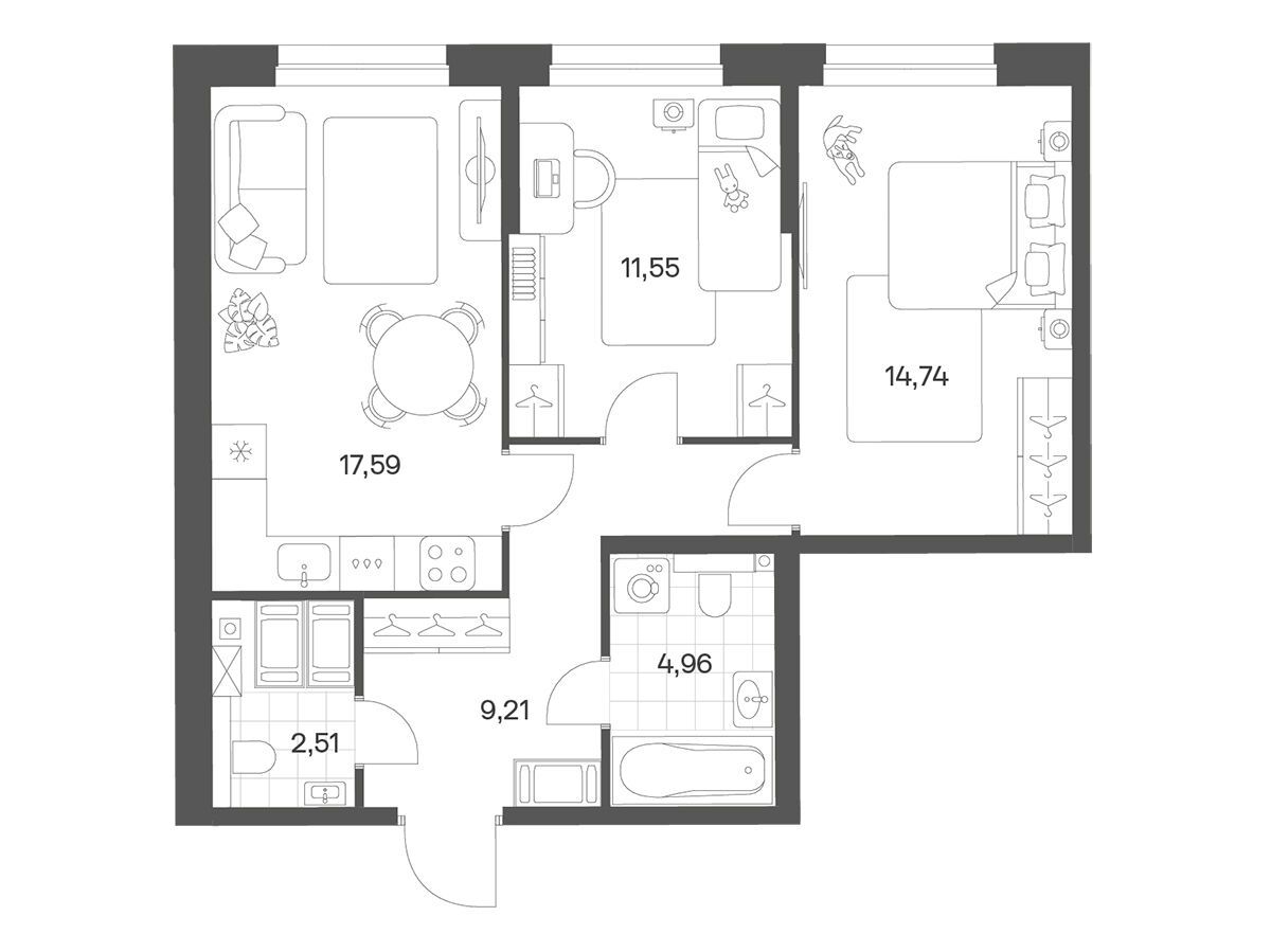 Квартиры предлагаются с черновой отделкой — это дает будущим владельцам свободу в реализации собственных дизайнерских идей и позволяет спланировать ремонт под свой бюджет. Высота потолков в 2,7 м создает ощущение простора даже в компактных планировках.