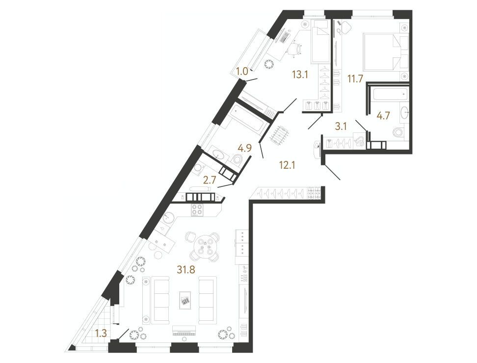 2-комнатная квартира, 77.70 м², 11 из 14 эт.
