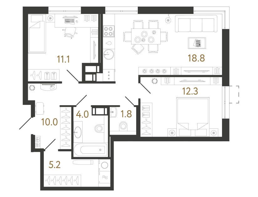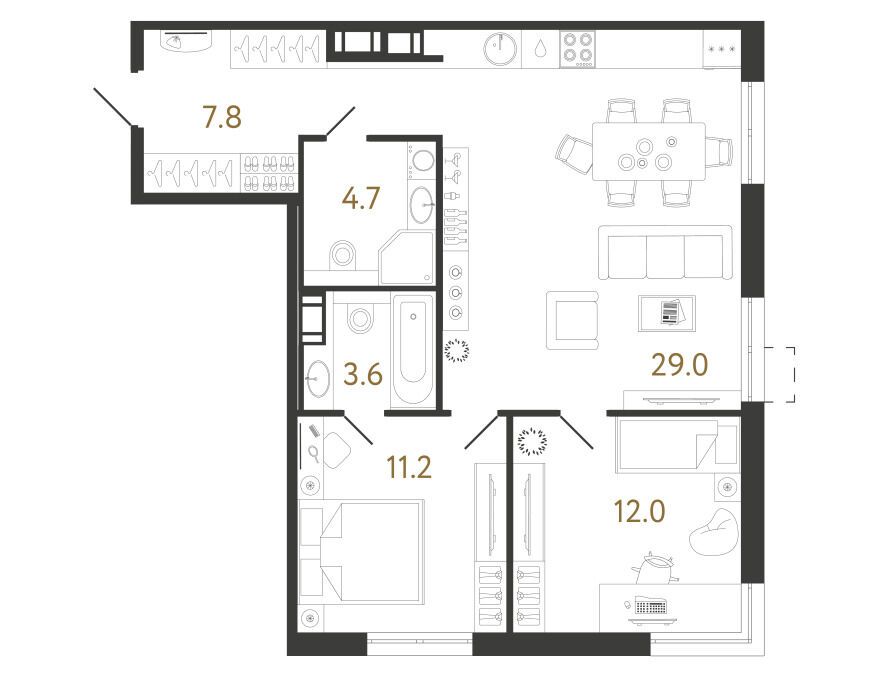 2-комнатная квартира, 63.20 м², 17 из 23 эт.