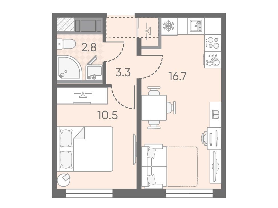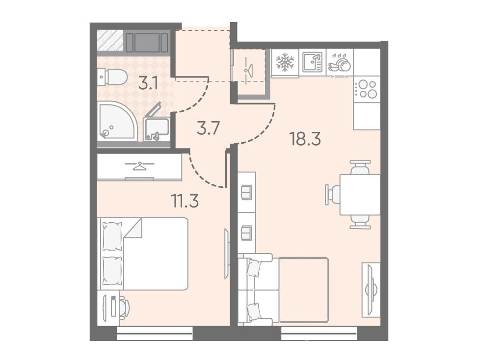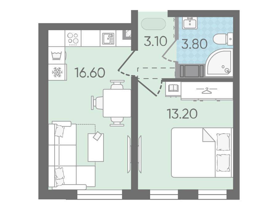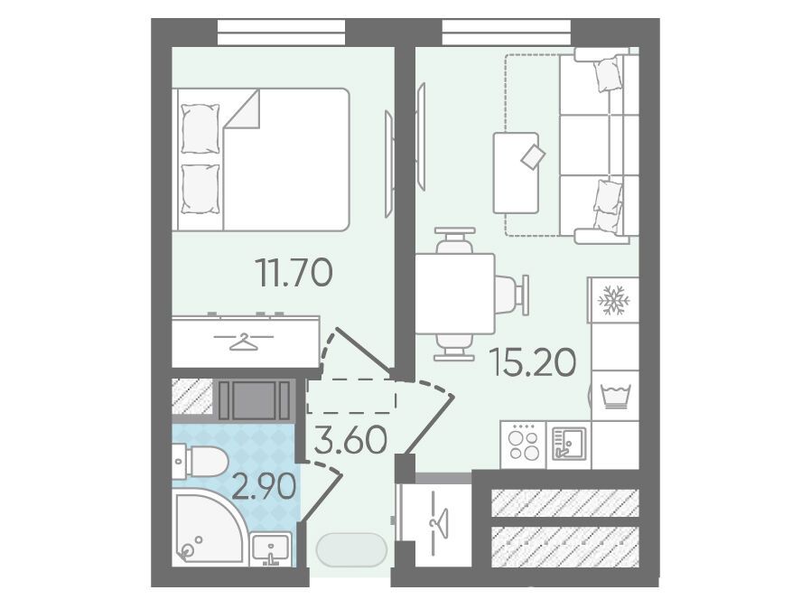 1-комнатная, 36.40 м²