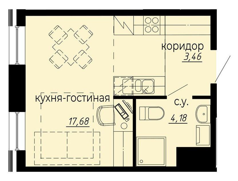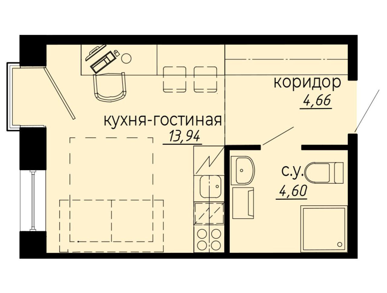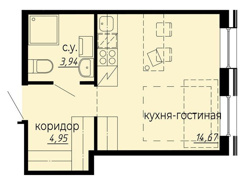 Студия, 22.95 м²