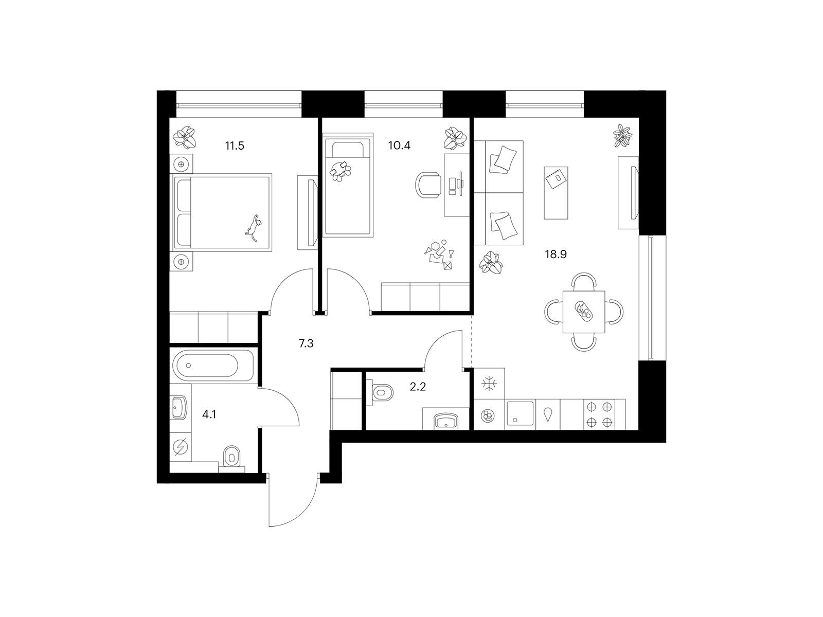 2-комнатная, 53.30 м²