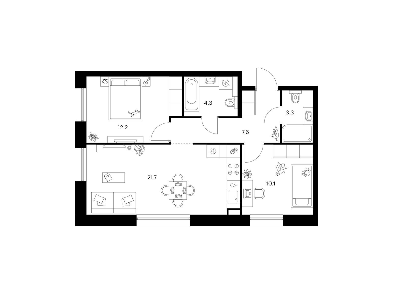 2-комнатная квартира, 60.80 м², 3 из 8 эт.