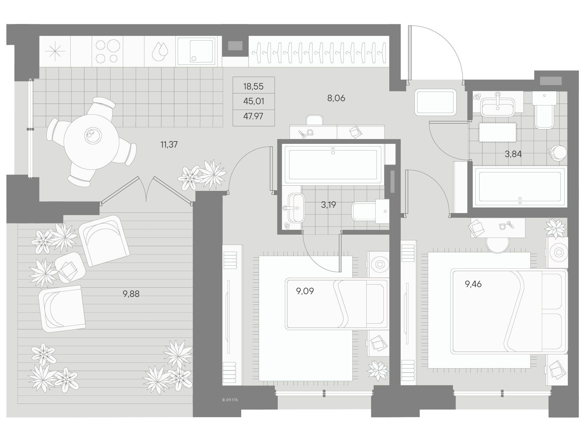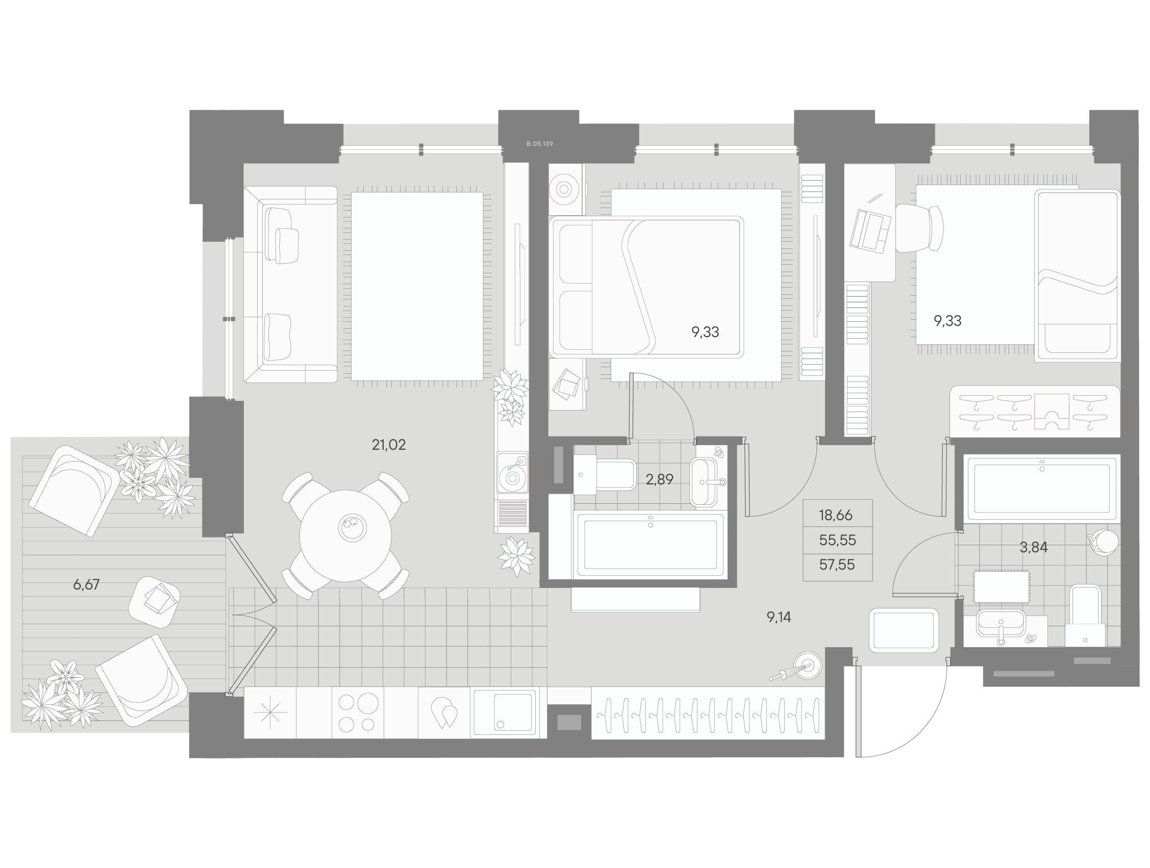 2-комнатная квартира, 70.23 м², 10 из 12 эт.