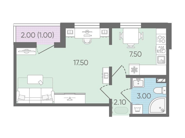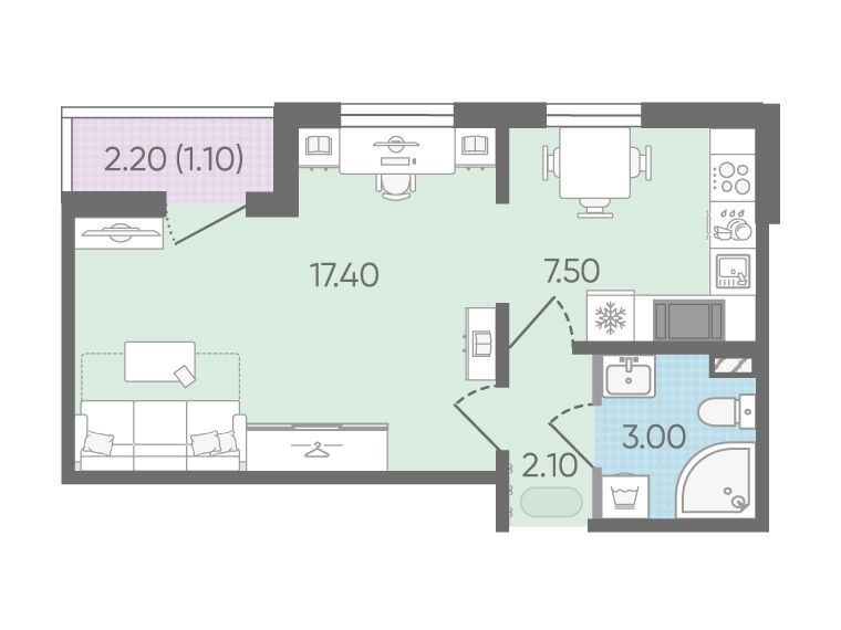 1-комнатная, 31.10 м²