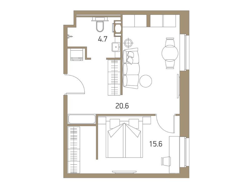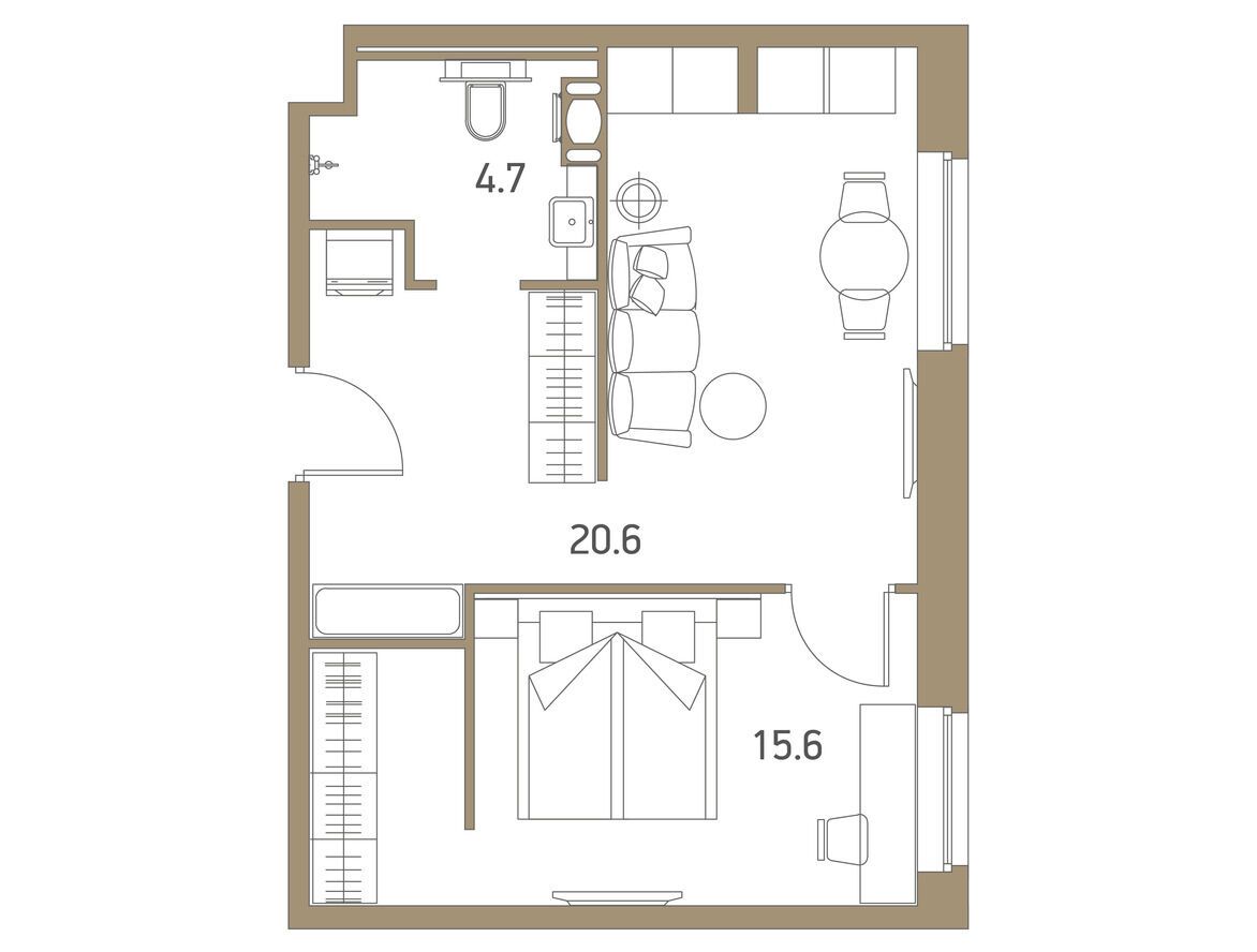 1-комнатная квартира, 46.10 м², 8 из 11 эт.
