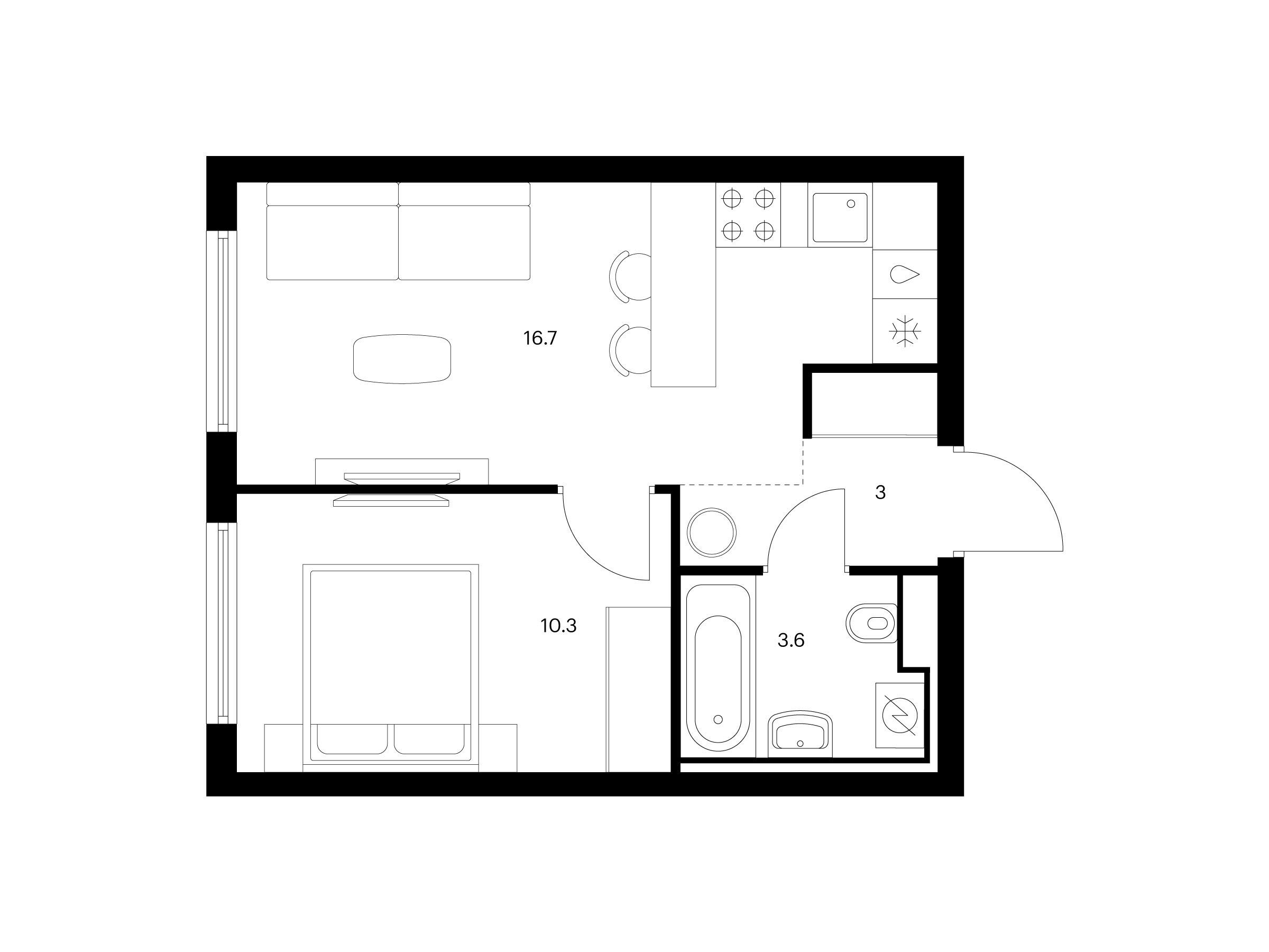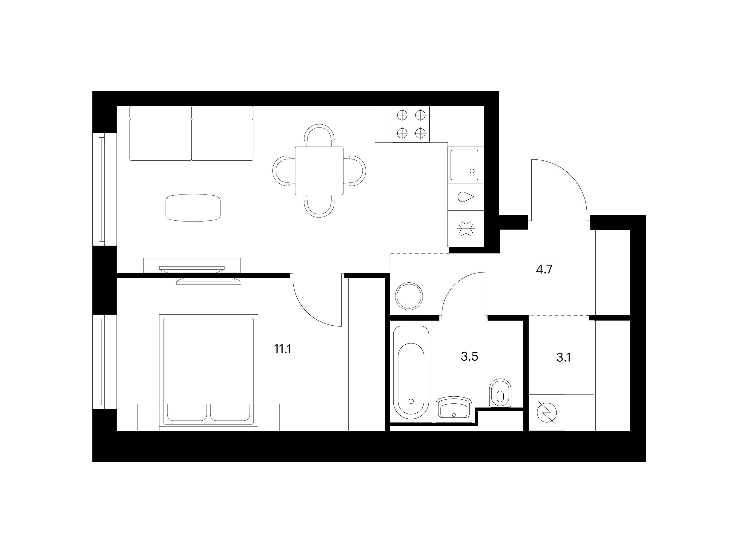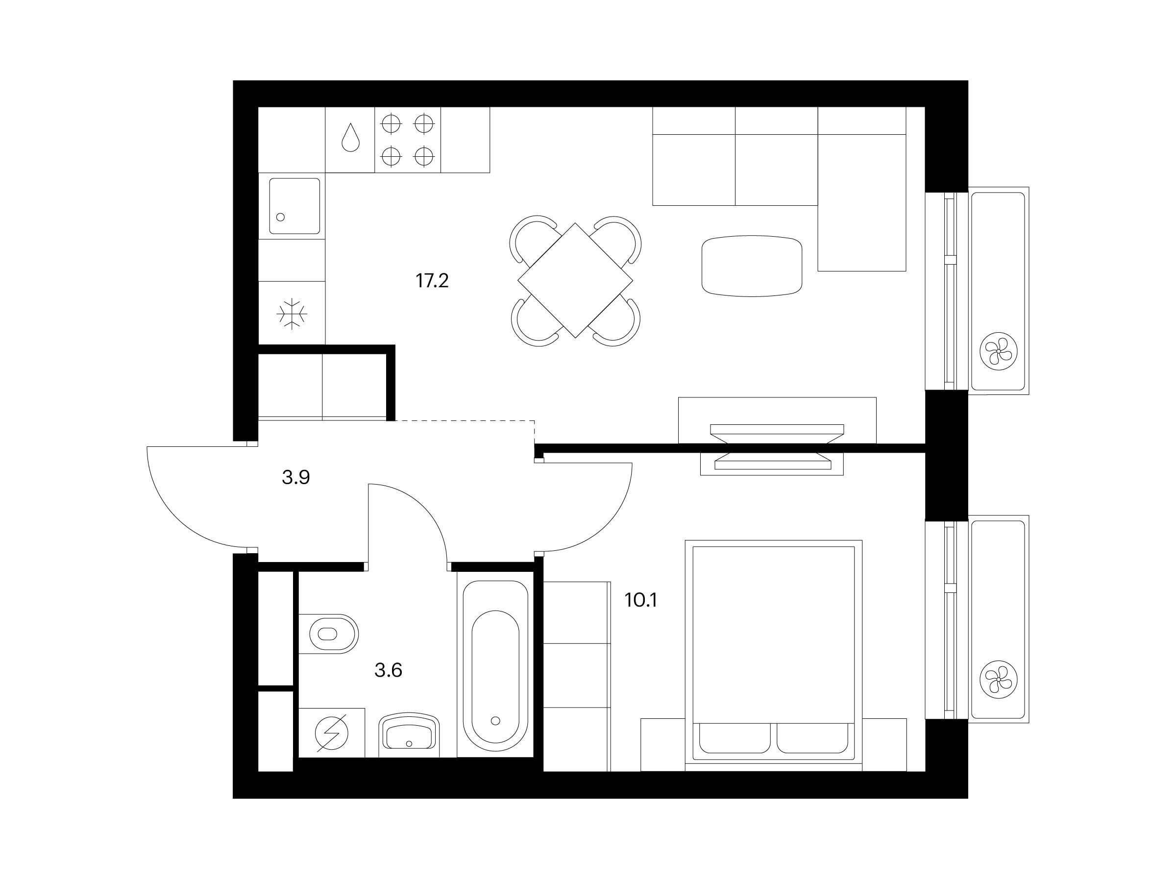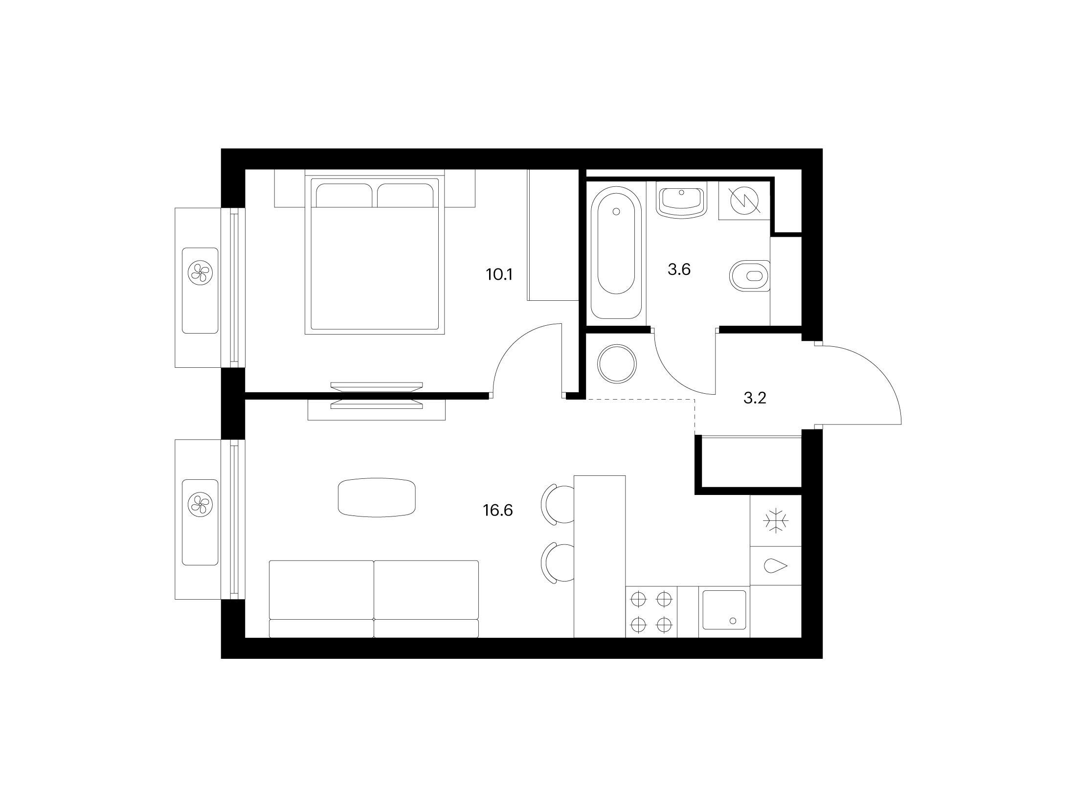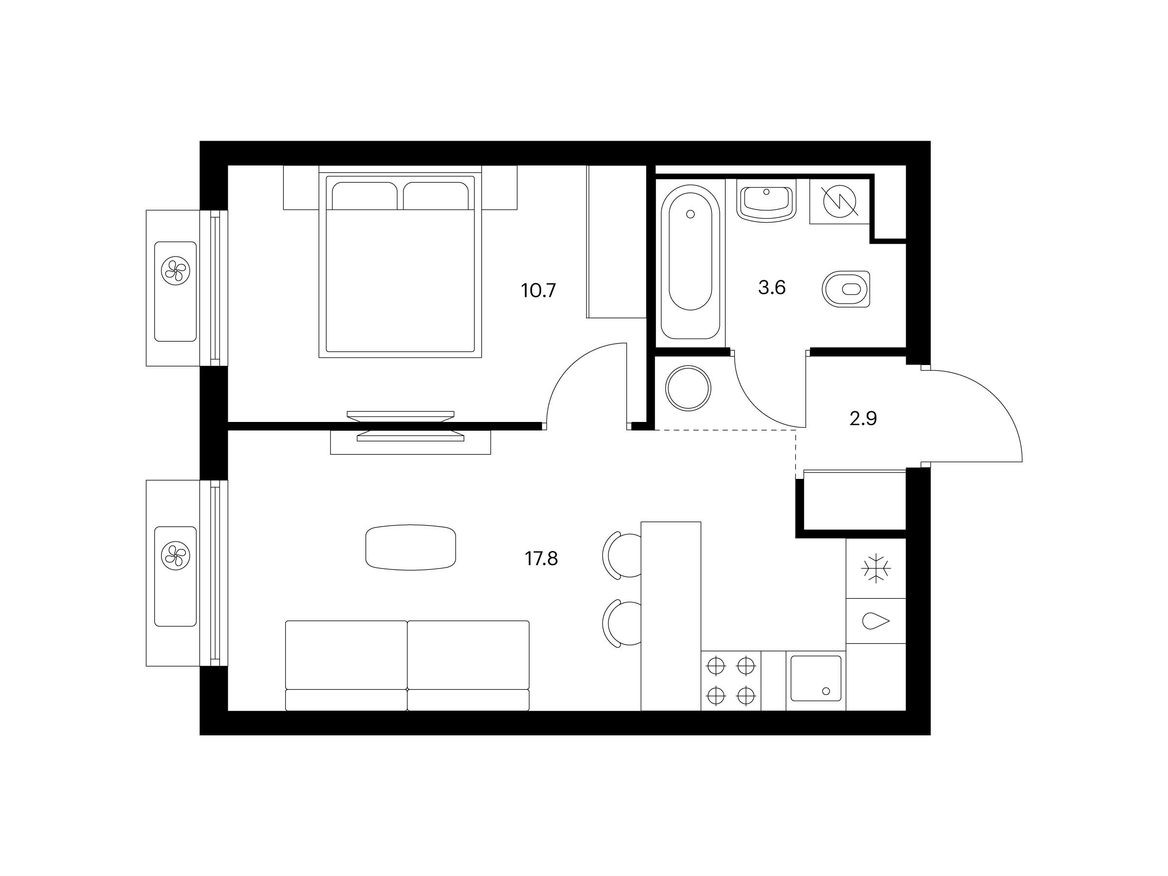 1-комнатная, 34.80 м²