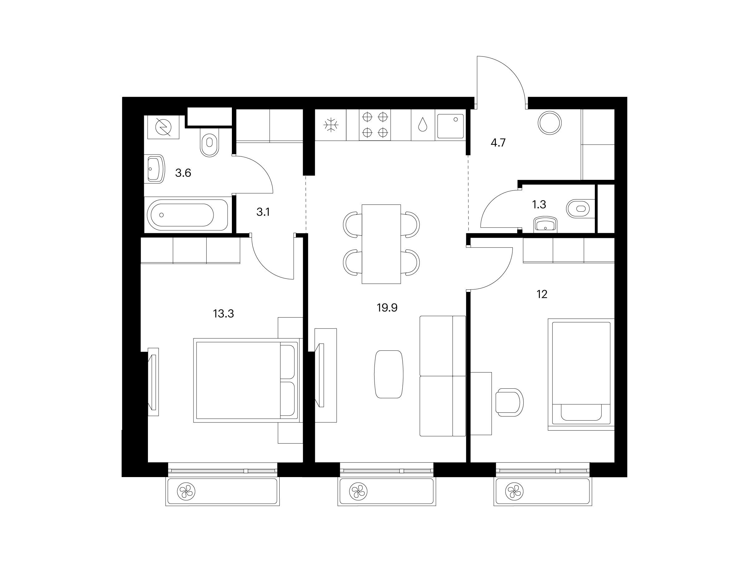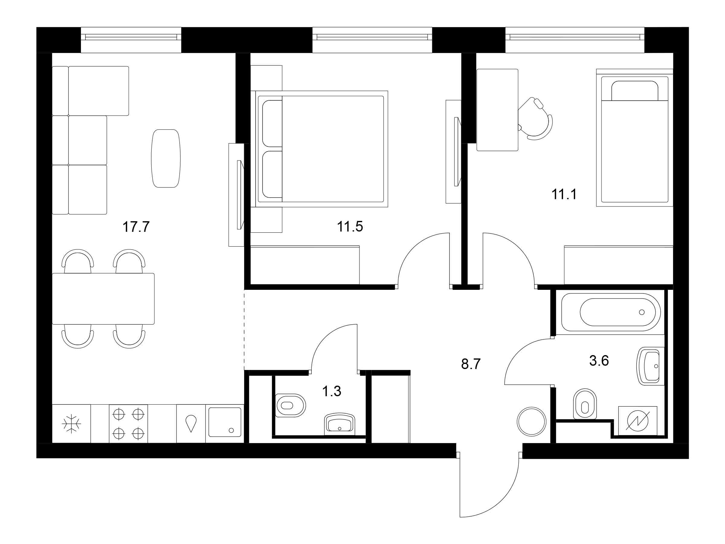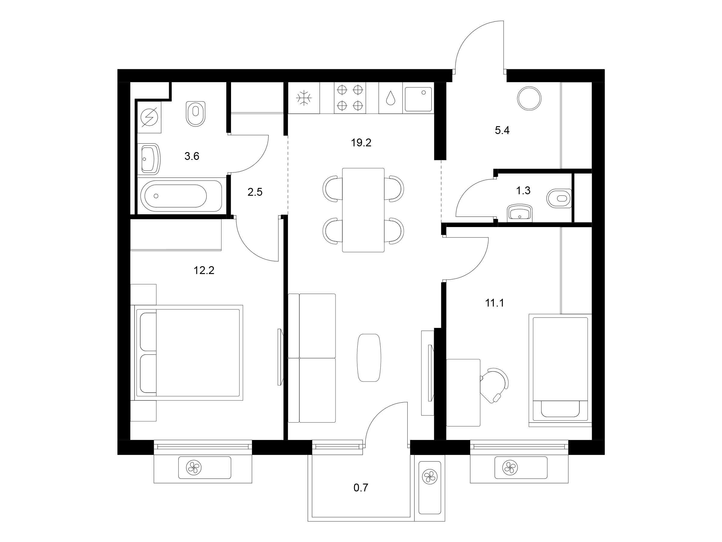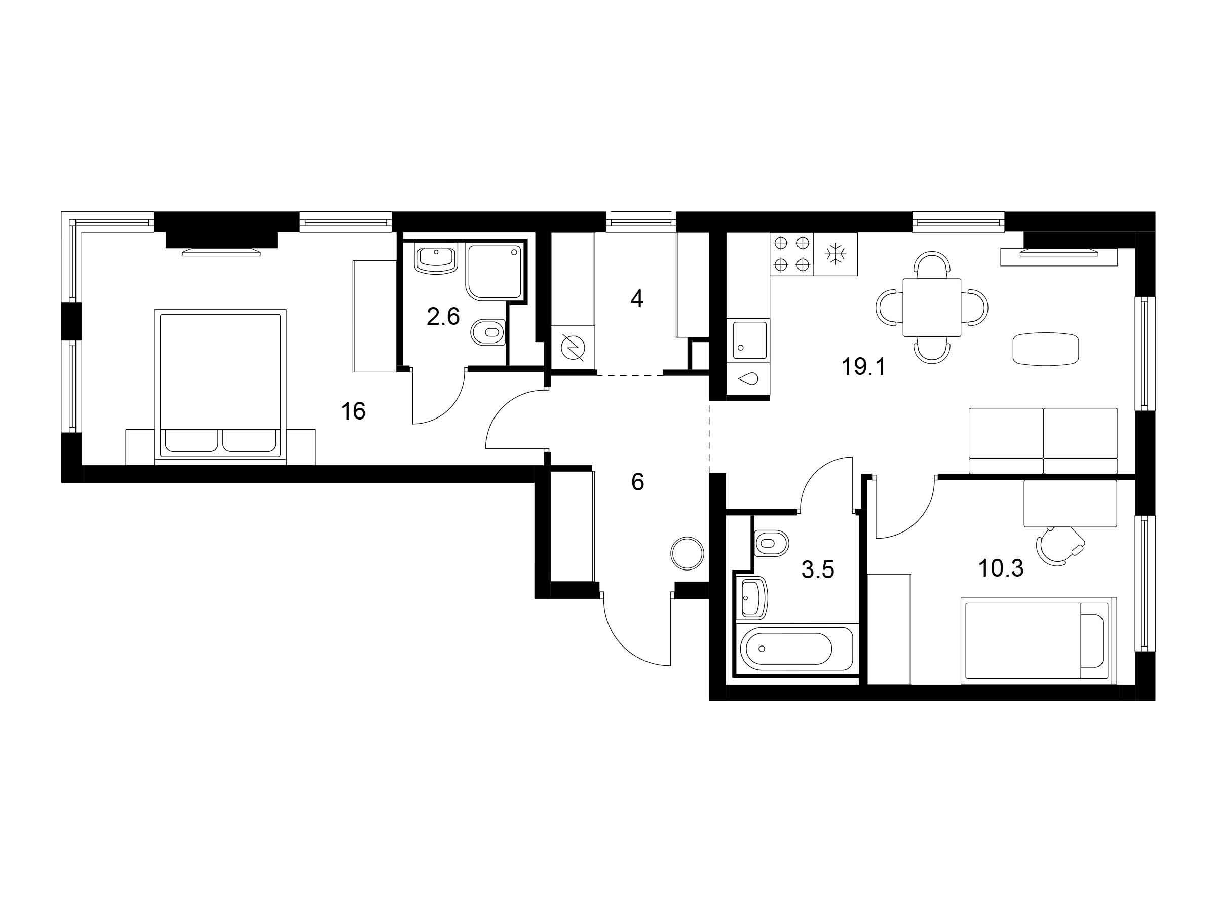 2-комнатная, 54.80 м²