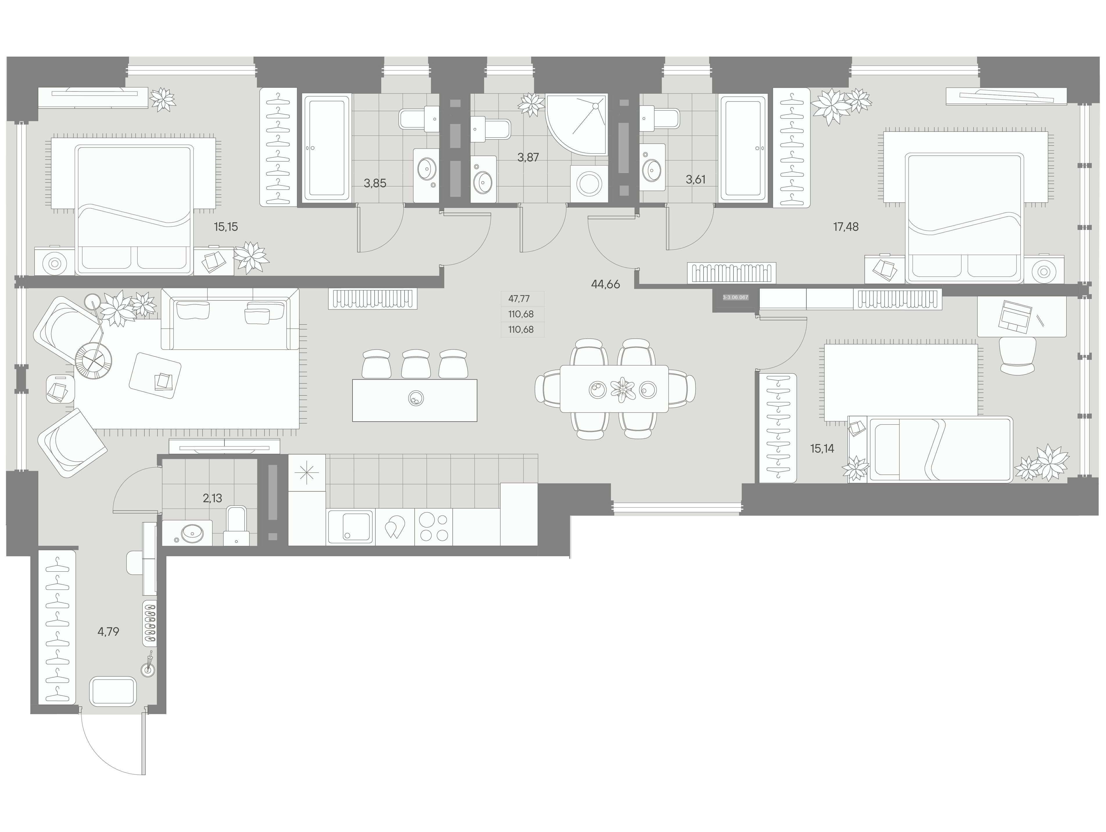 3-комнатная квартира, 122.12 м², 2 из 11 эт.