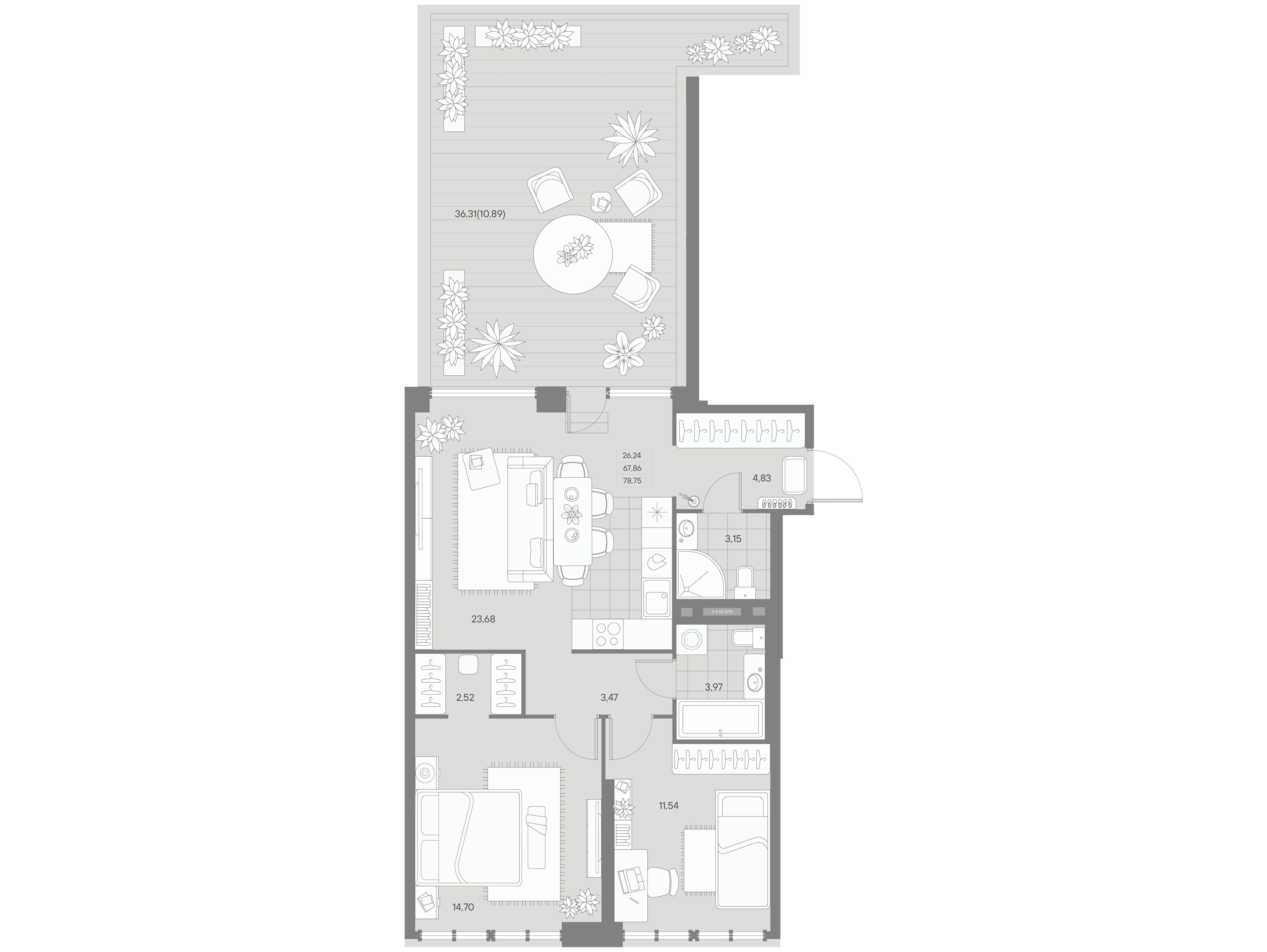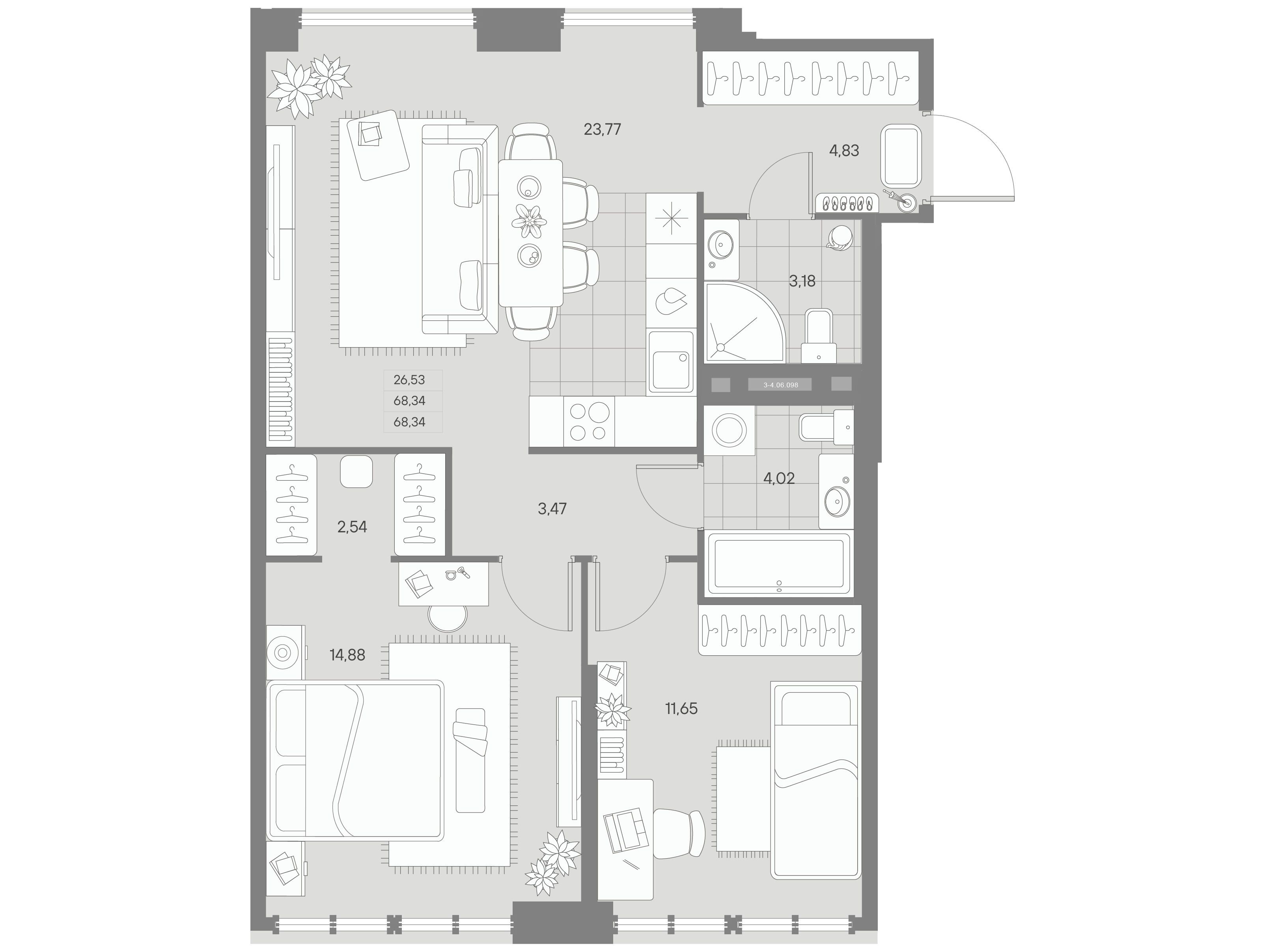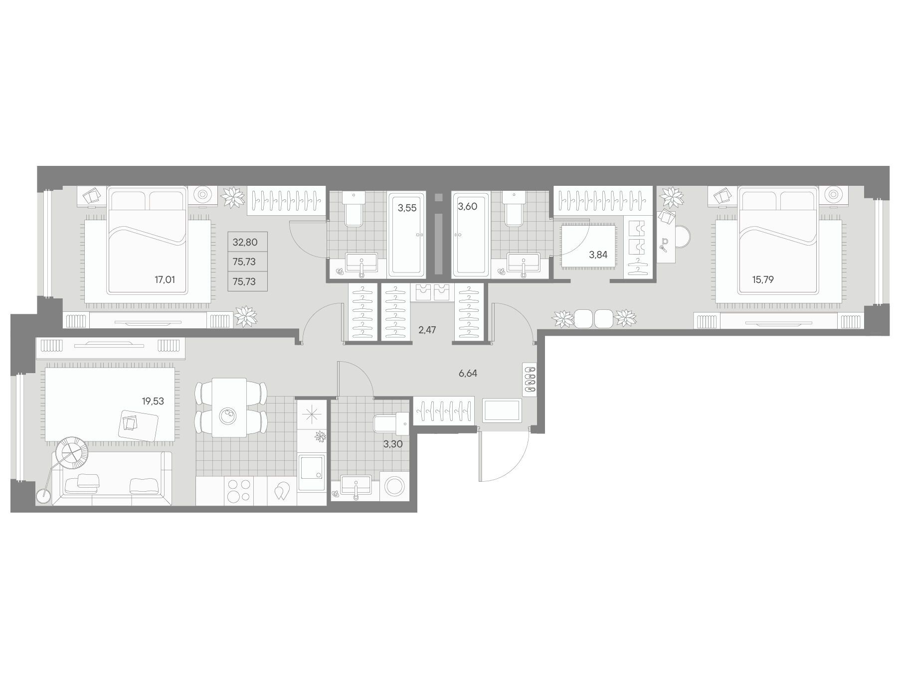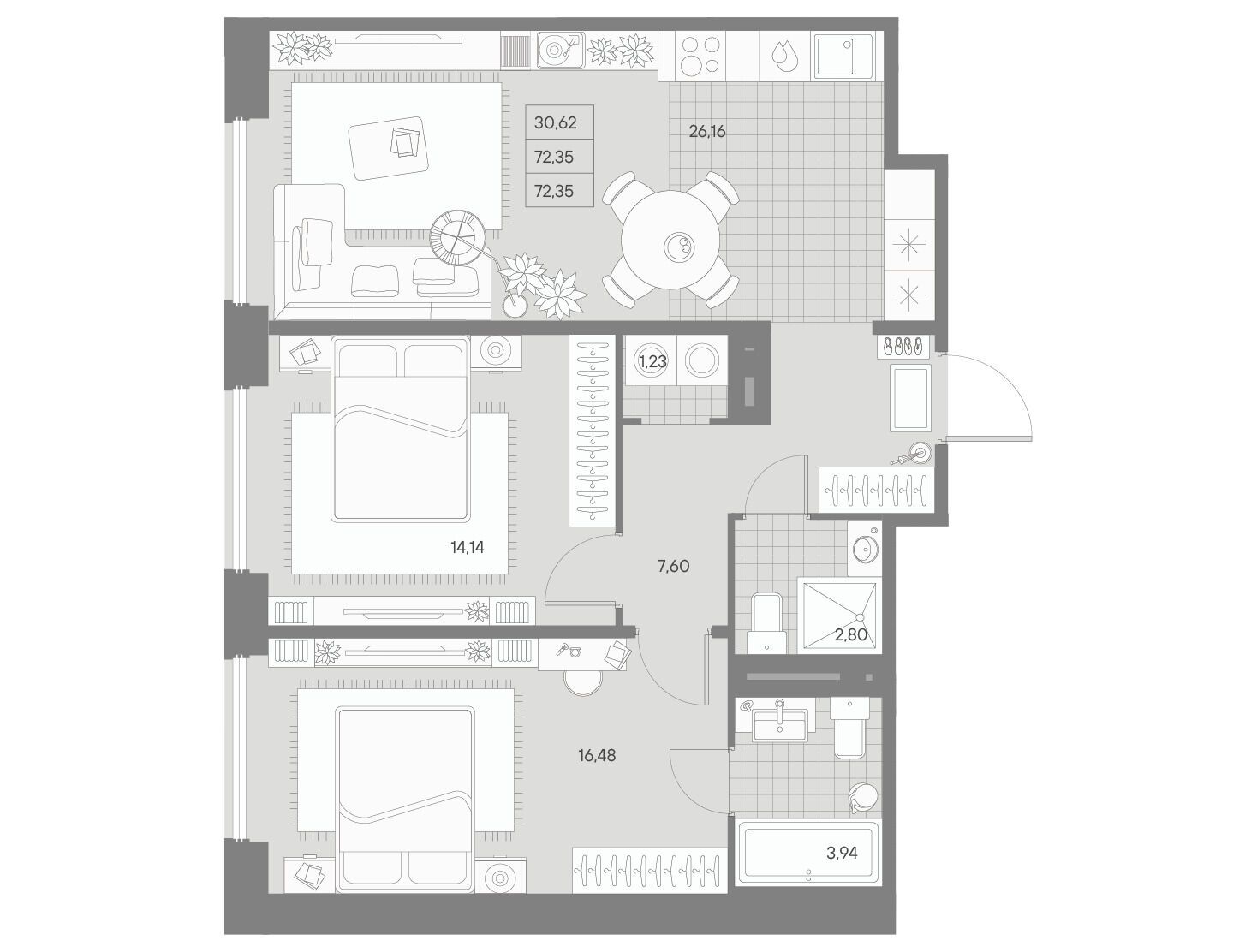 2-комнатная квартира, 73.81 м², 3 из 11 эт.