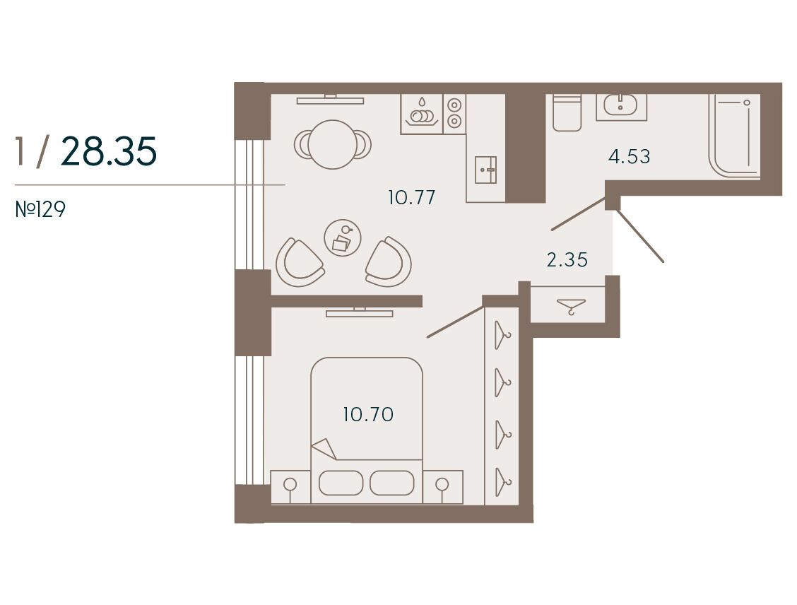 1-комнатная квартира, 28.45 м², 5 из 8 эт.