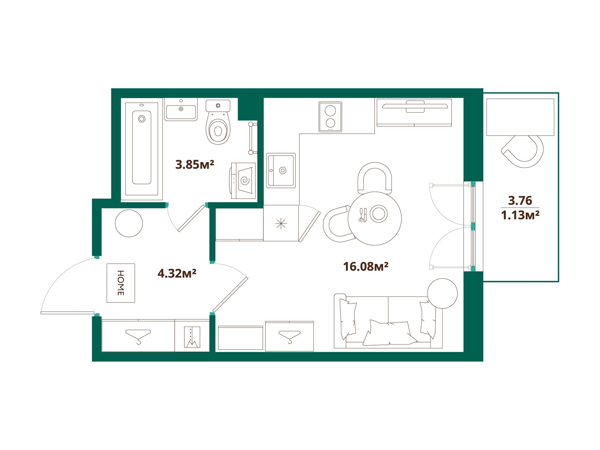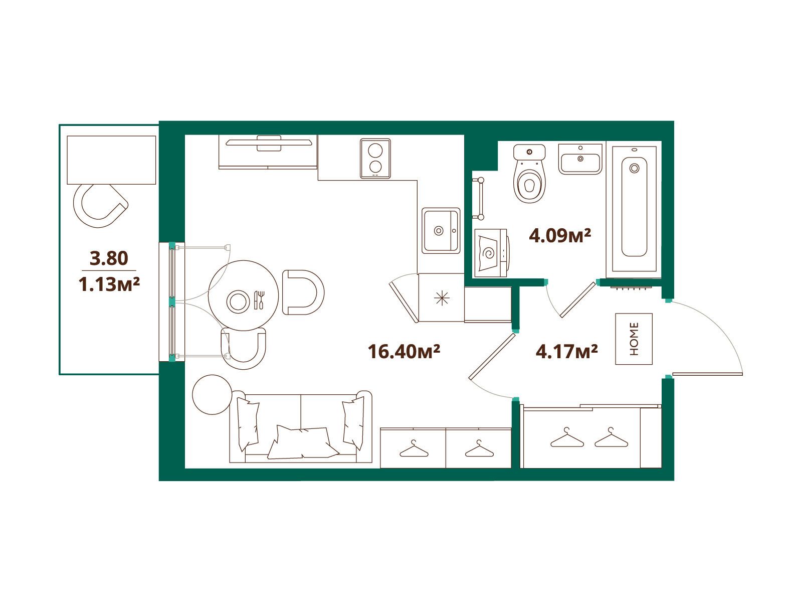 Студия, 25.79 м²