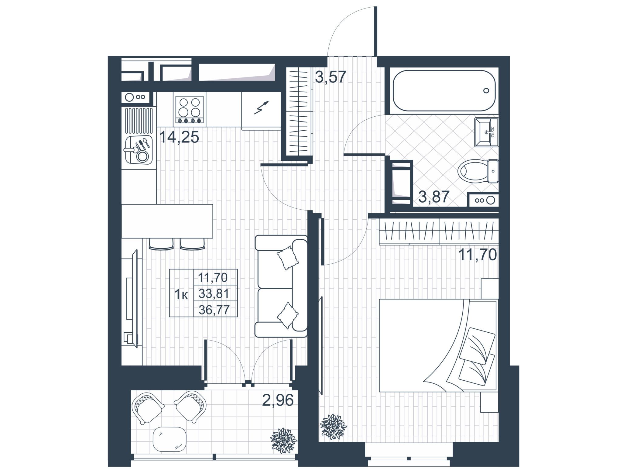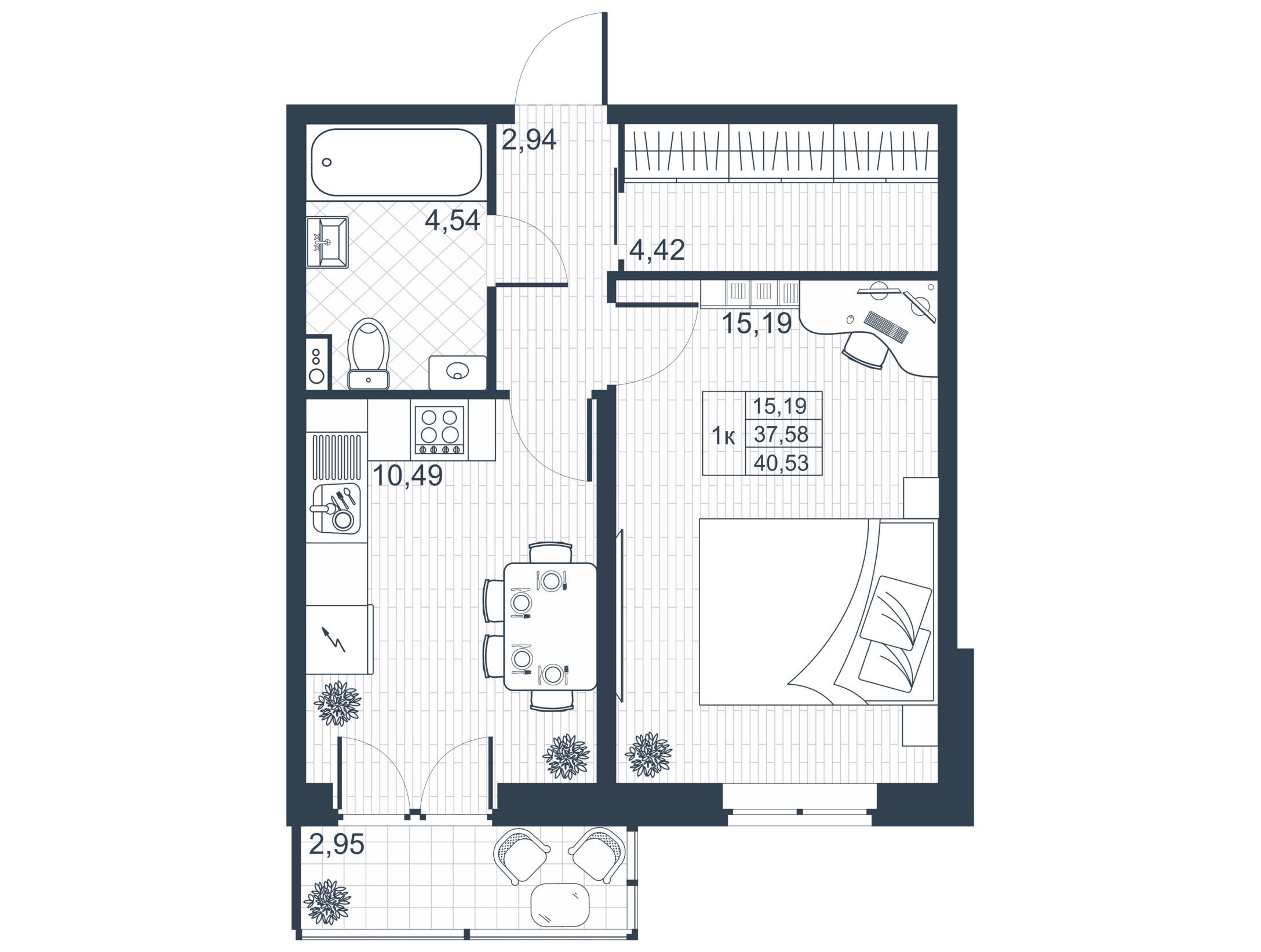 1-комнатная, 34.28 м²