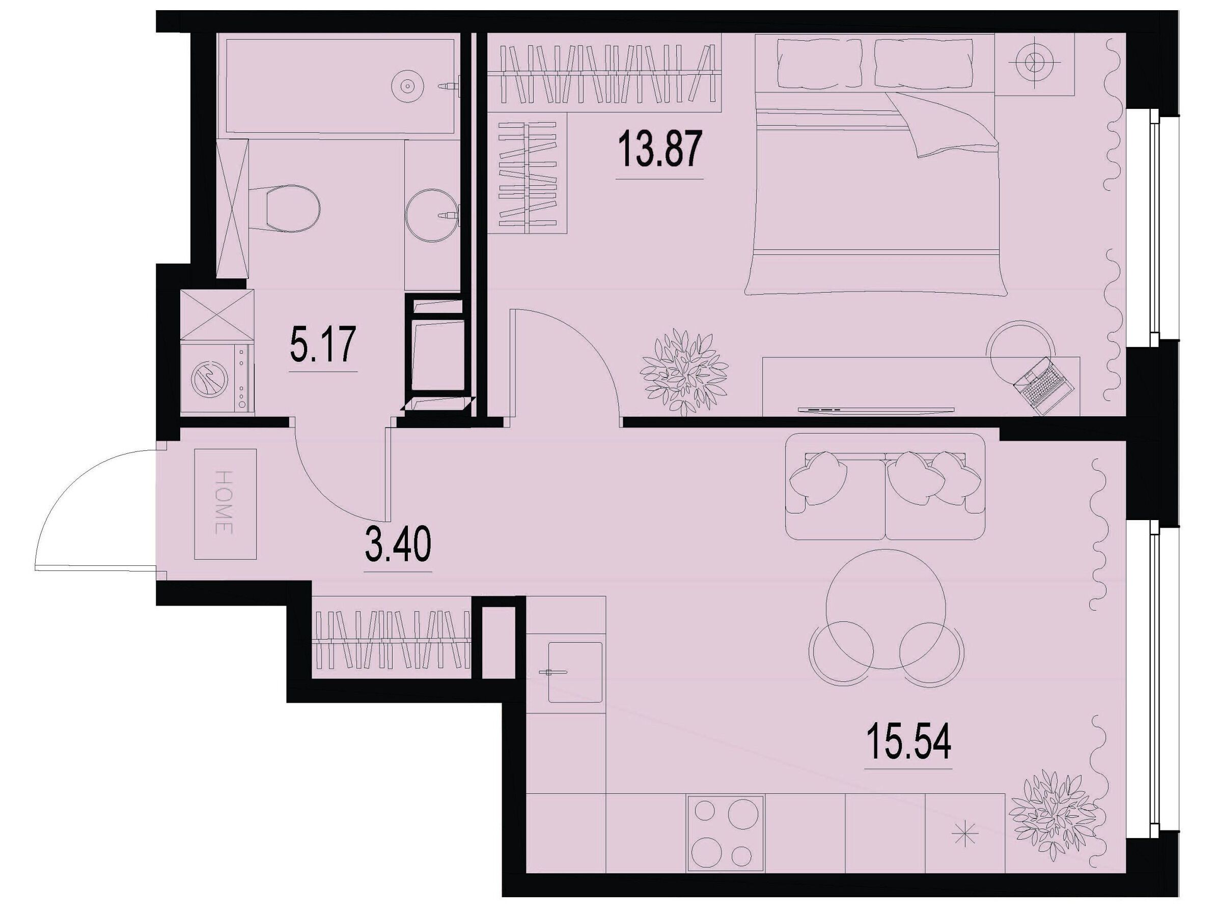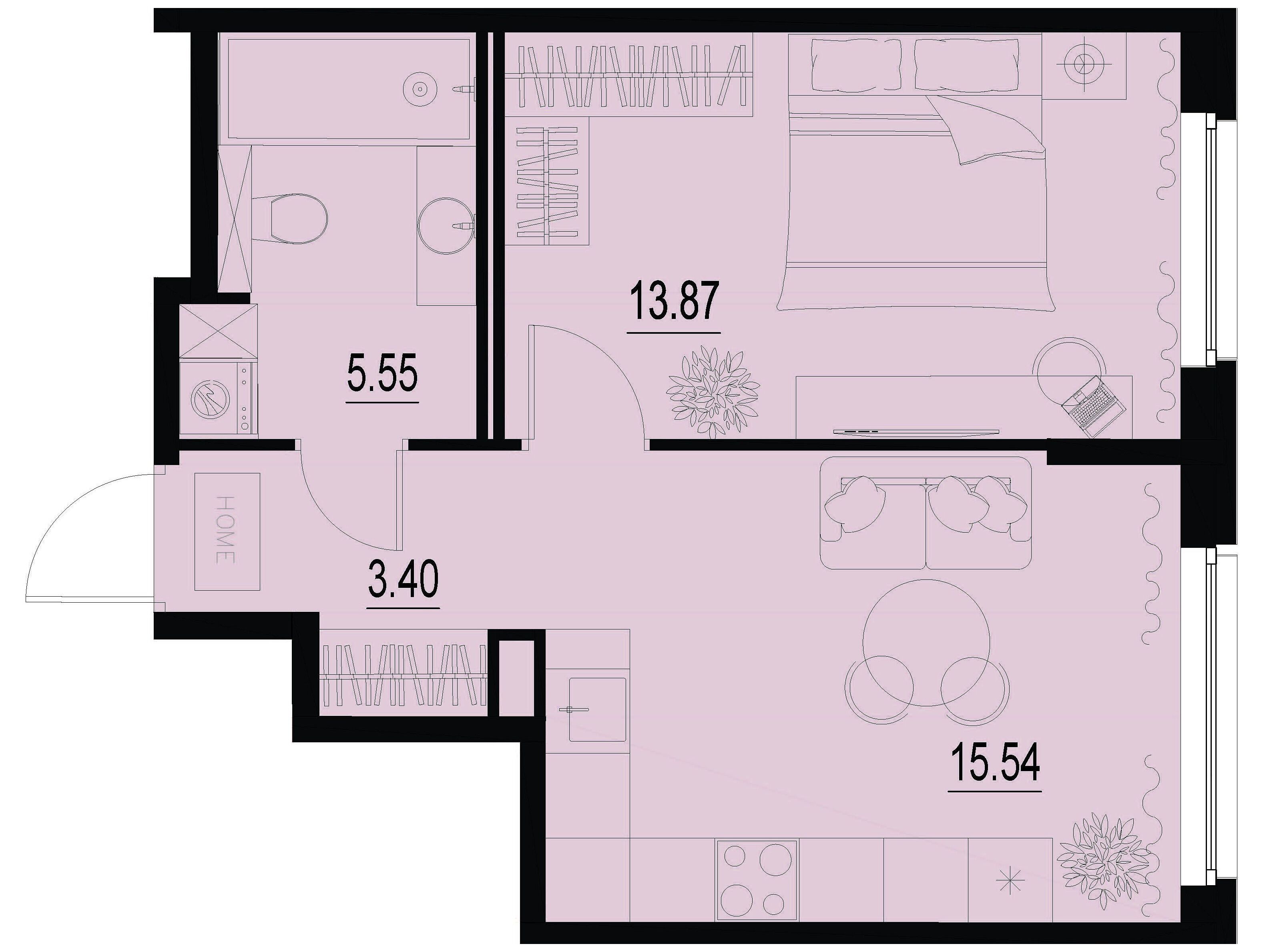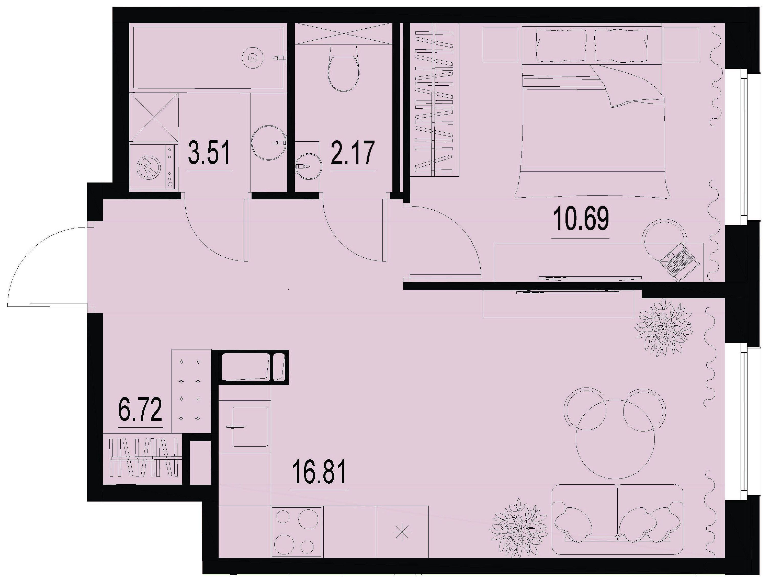 1-комнатная, 35.44 м²