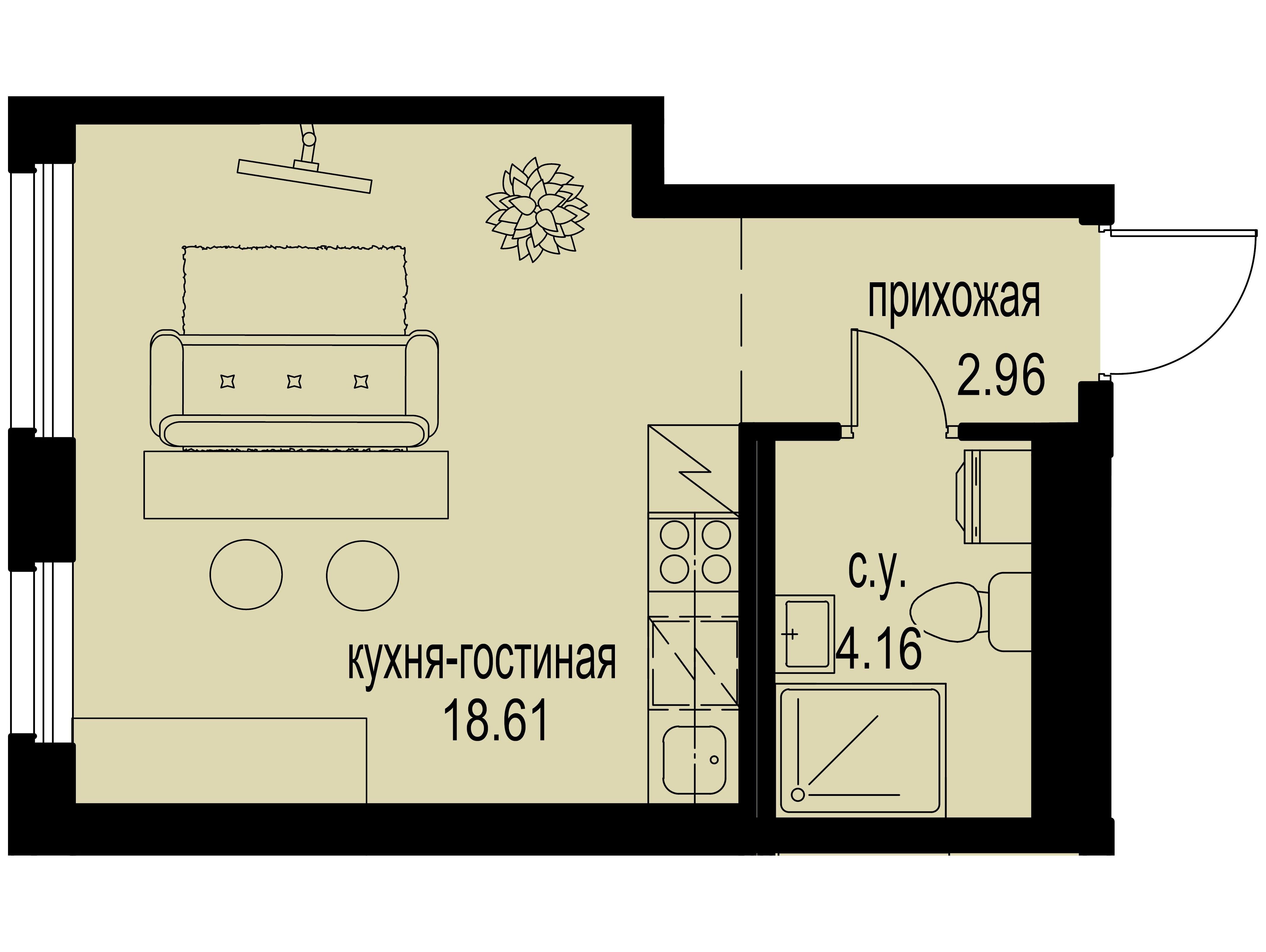 Студия, 27.86 м²