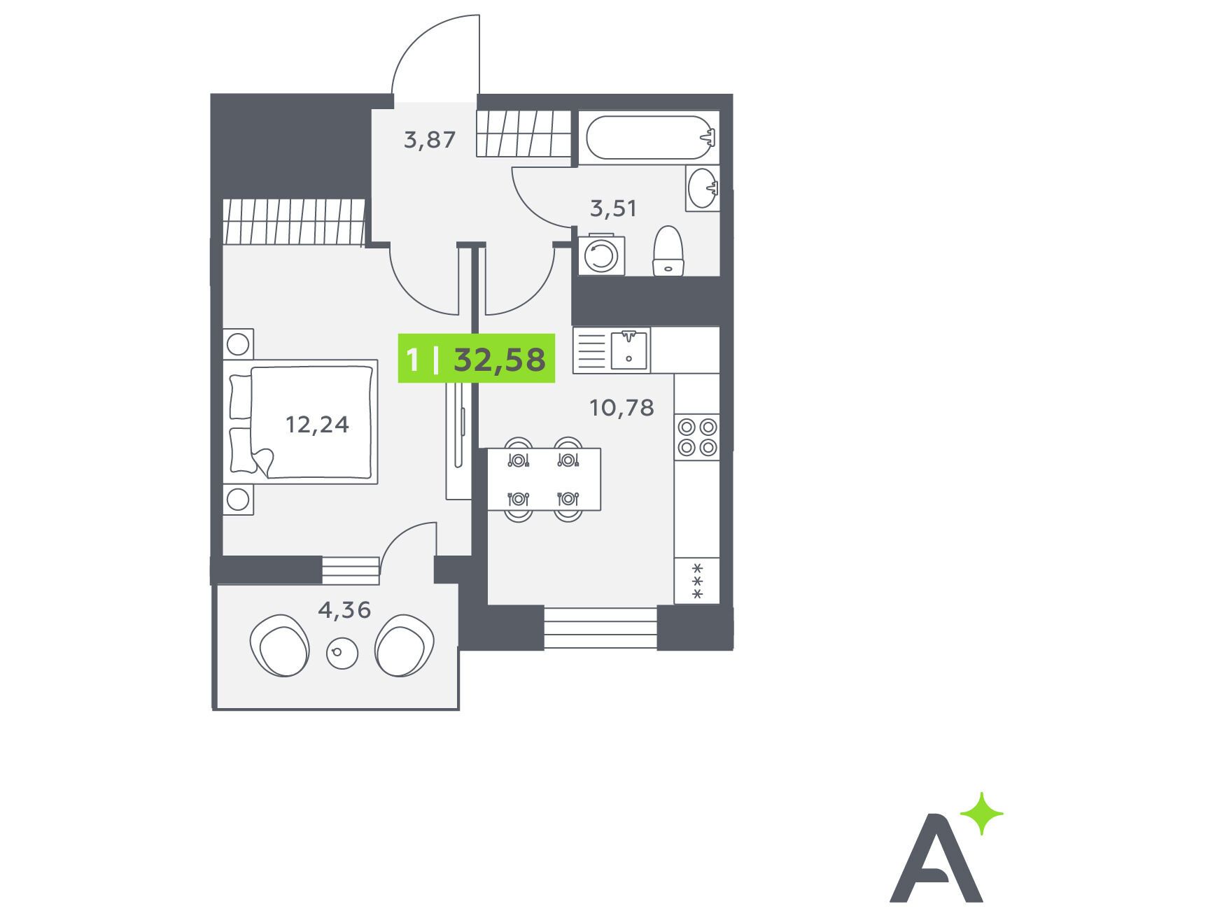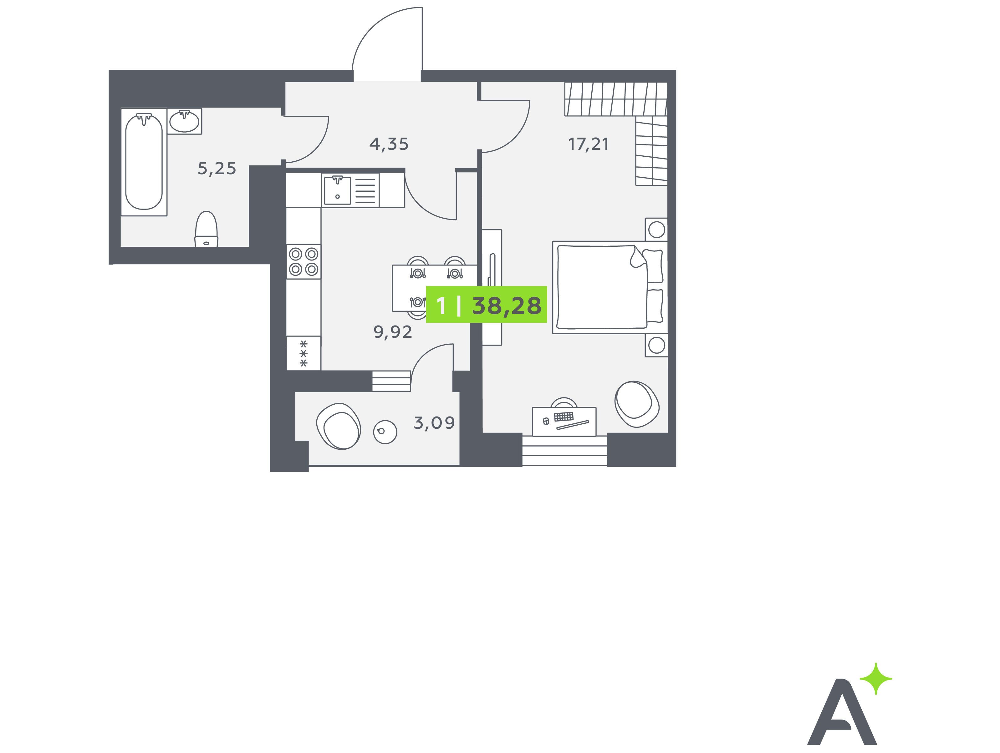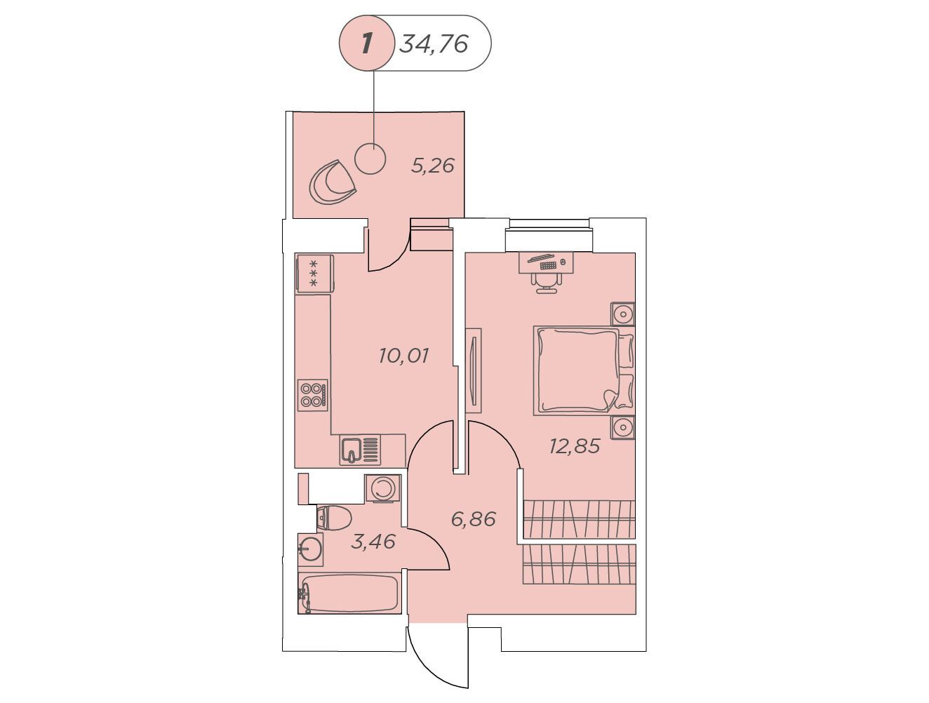 1-комнатная, 34.10 м²