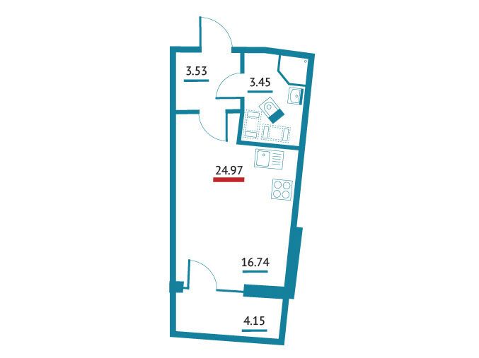 Студия, 24.74 м²