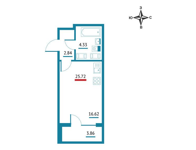 Студия, 24.74 м²