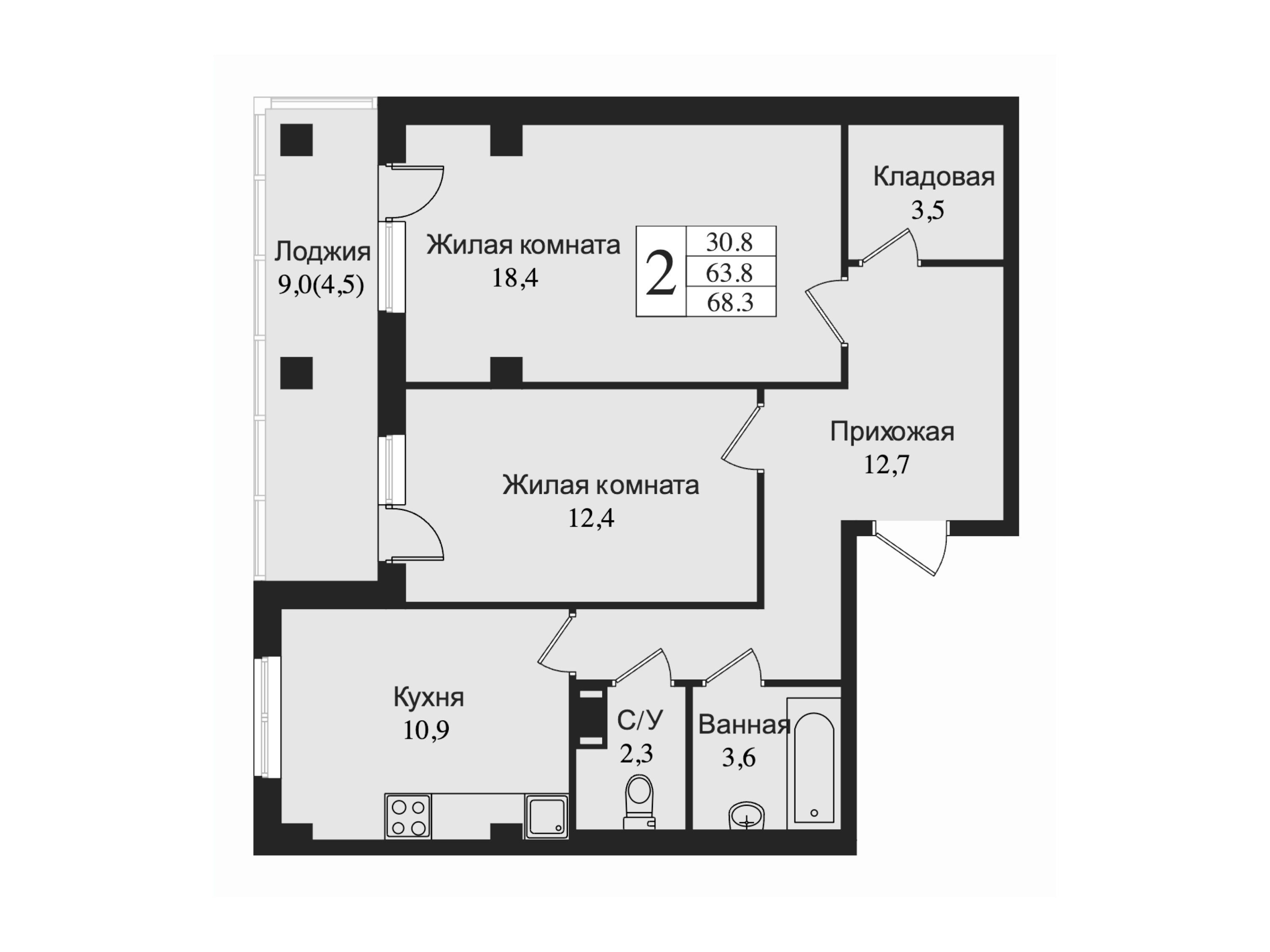 2-комнатная, 72.70 м²