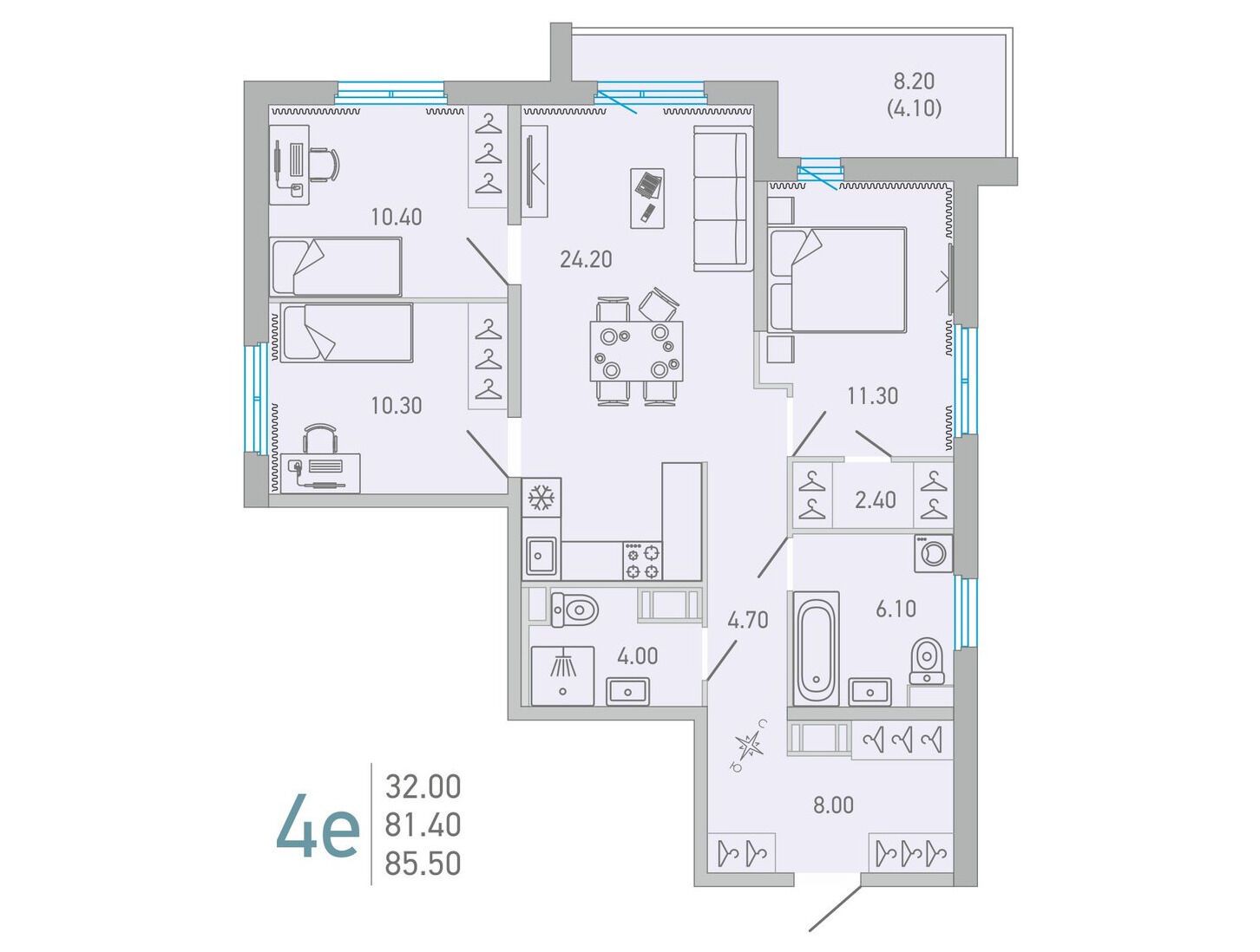 3-комнатная квартира, 67.60 м², 2 эт.