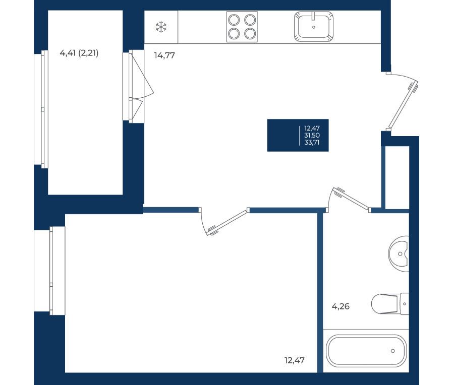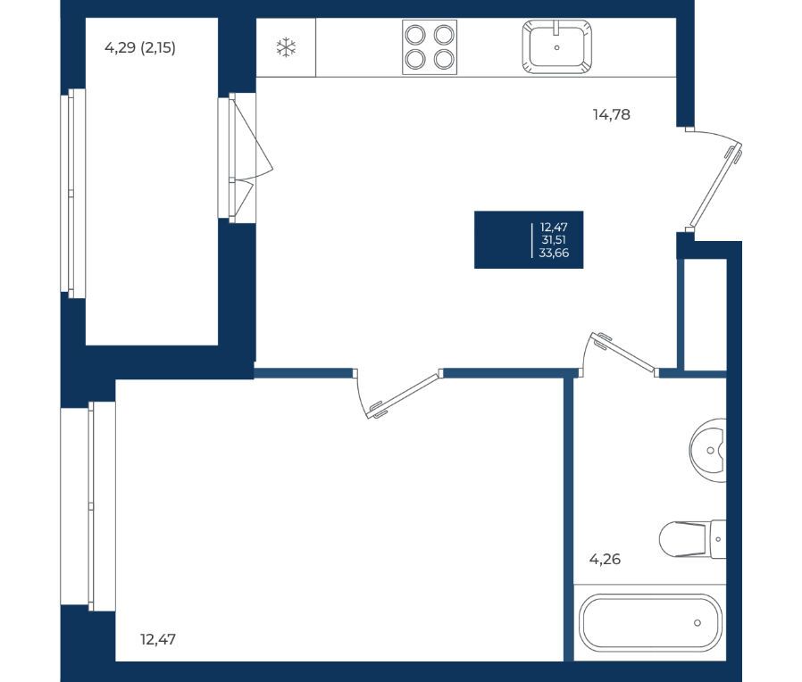 1-комнатная, 32.89 м²