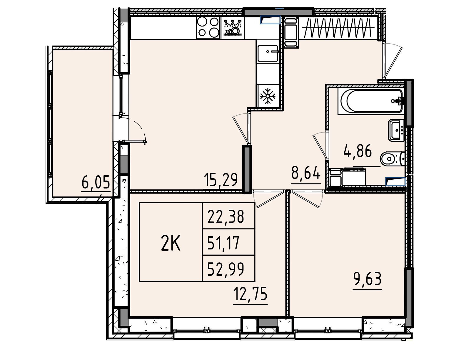 1-комнатная, 36.11 м²