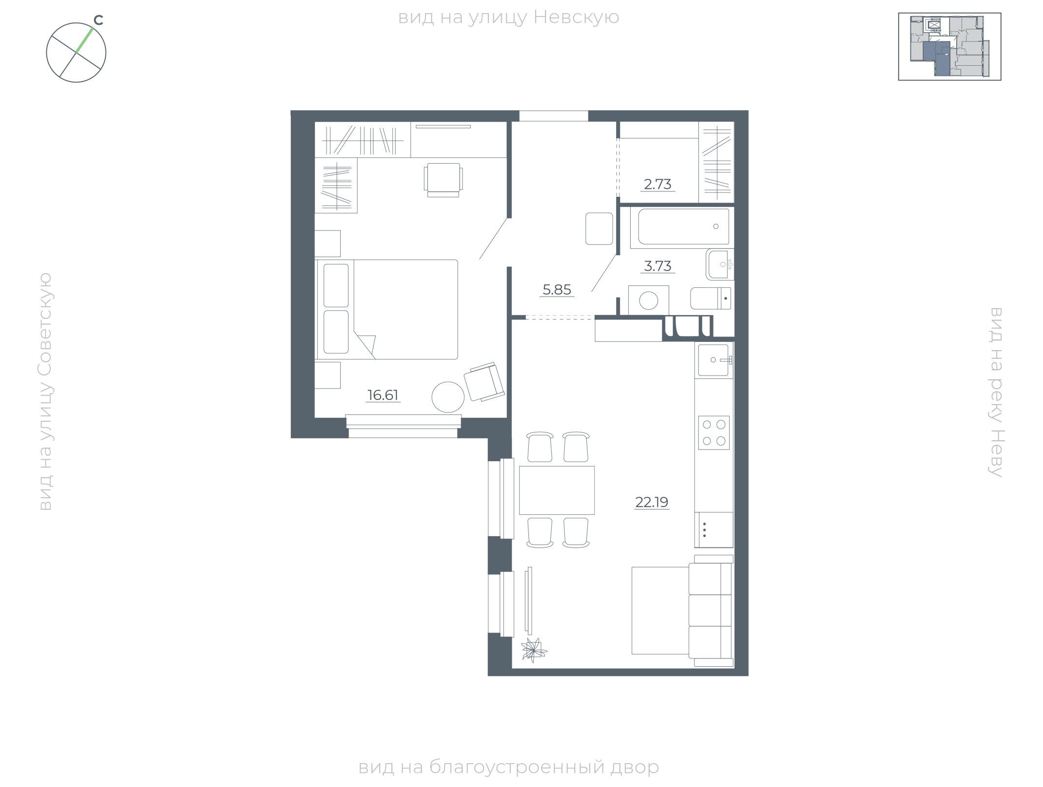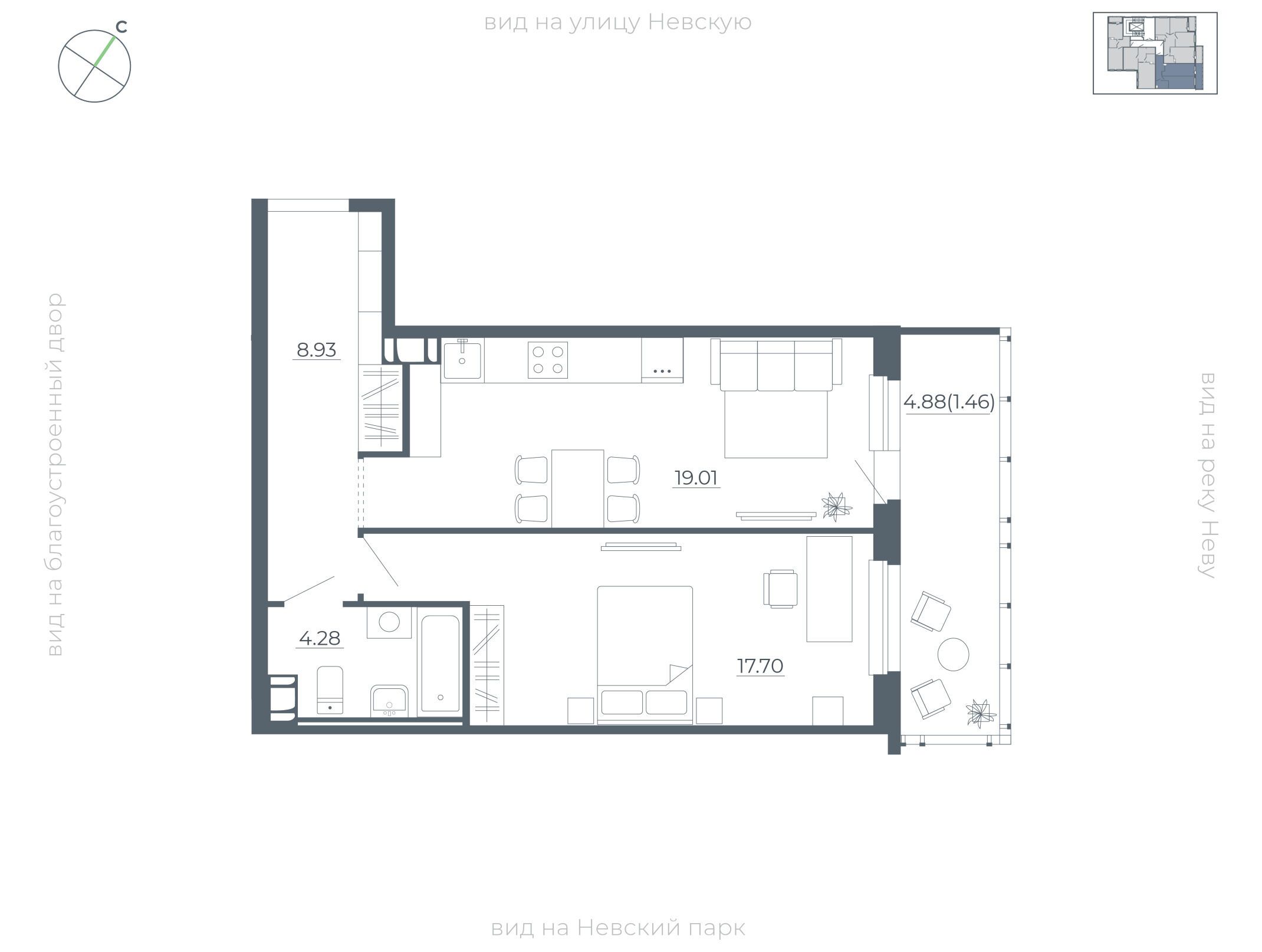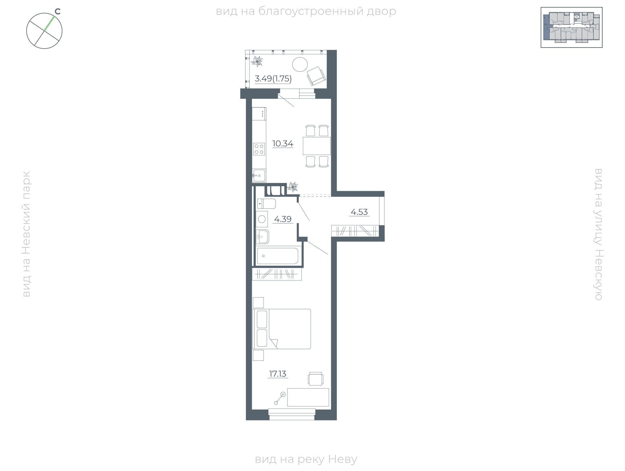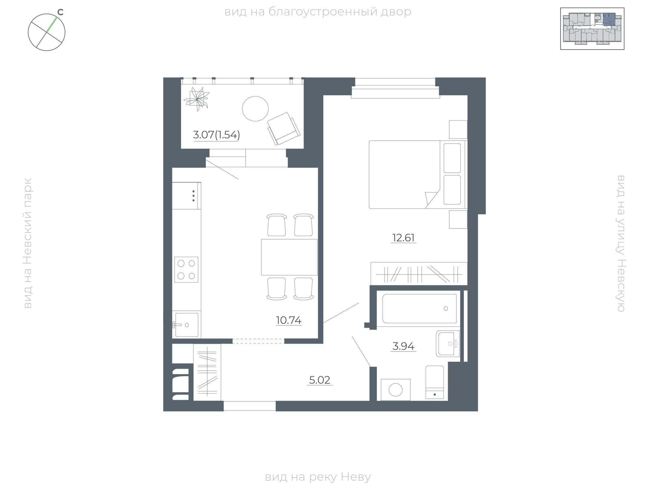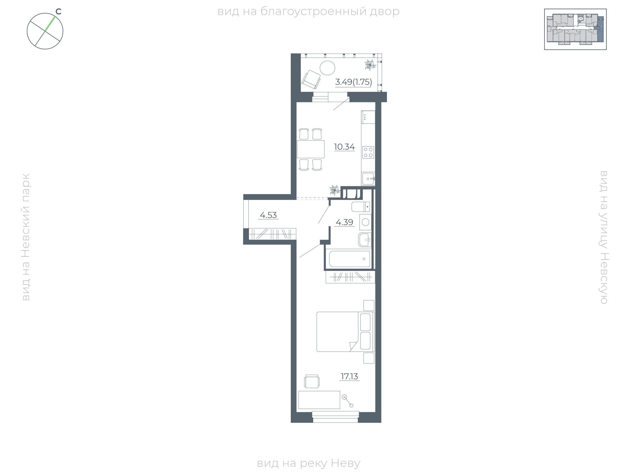 1-комнатная, 40.40 м²
