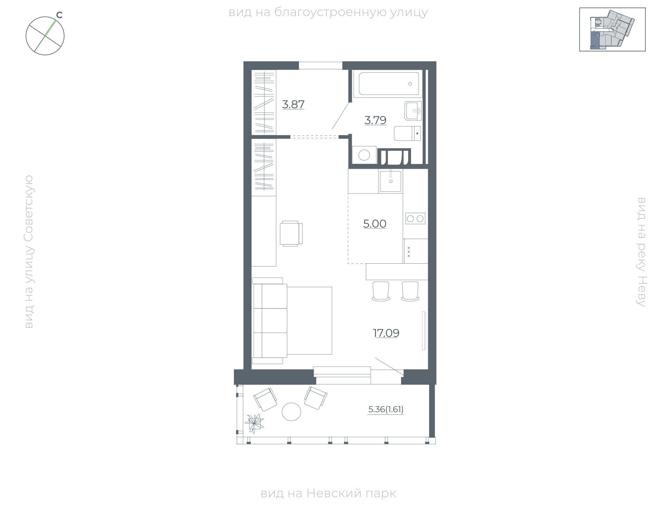 Студия, 30.70 м²