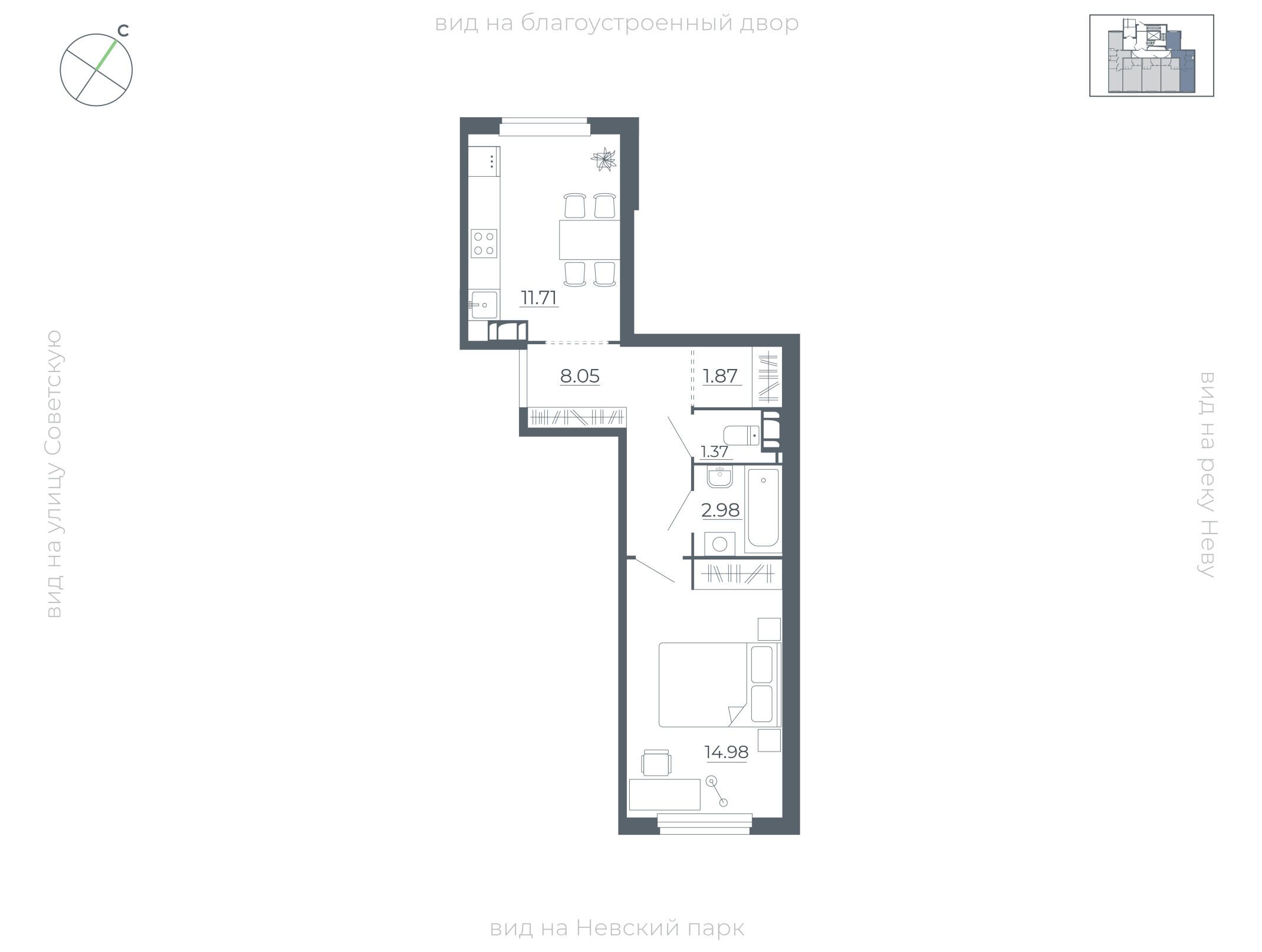 1-комнатная, 38.20 м²