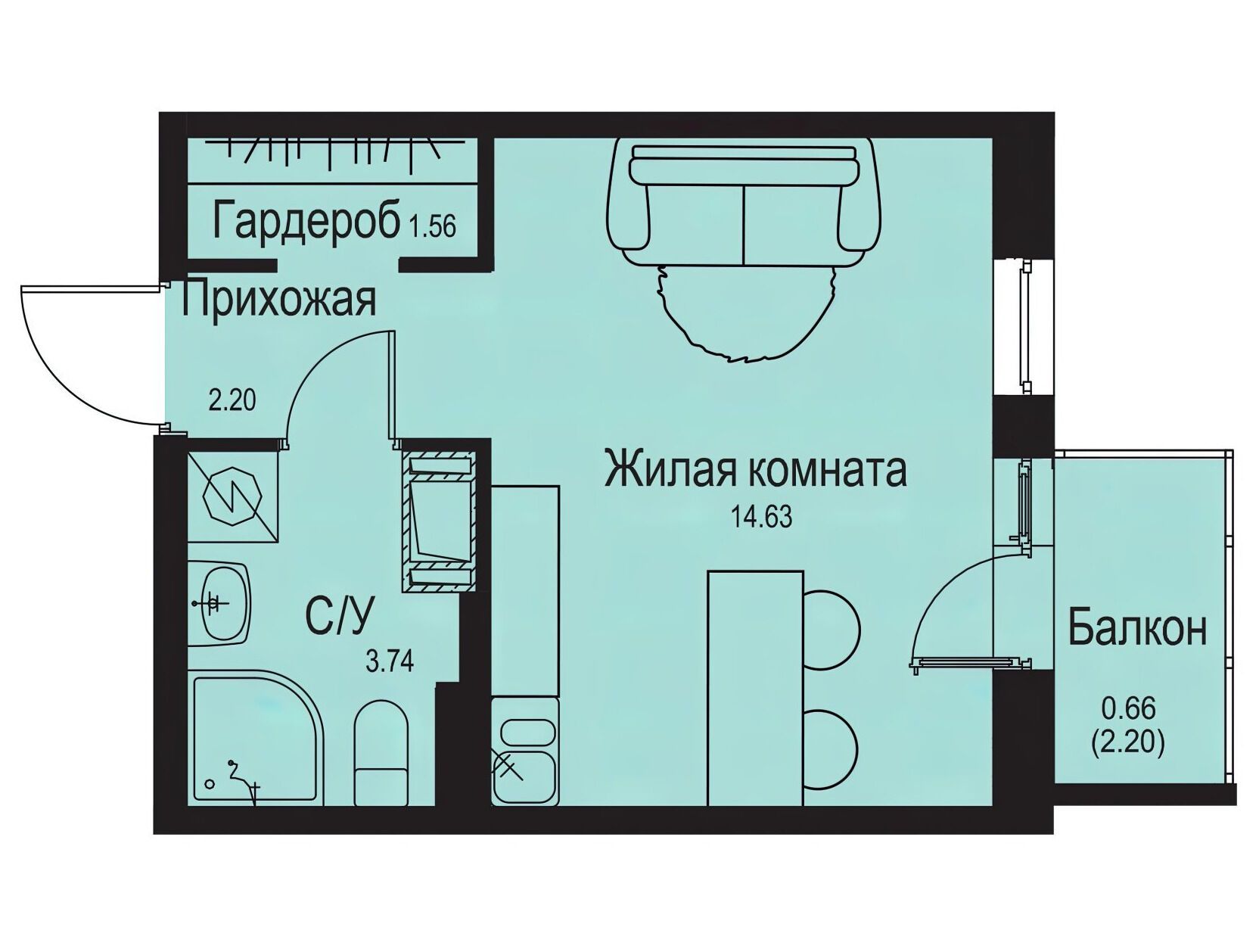 Студия, 22.18 м²