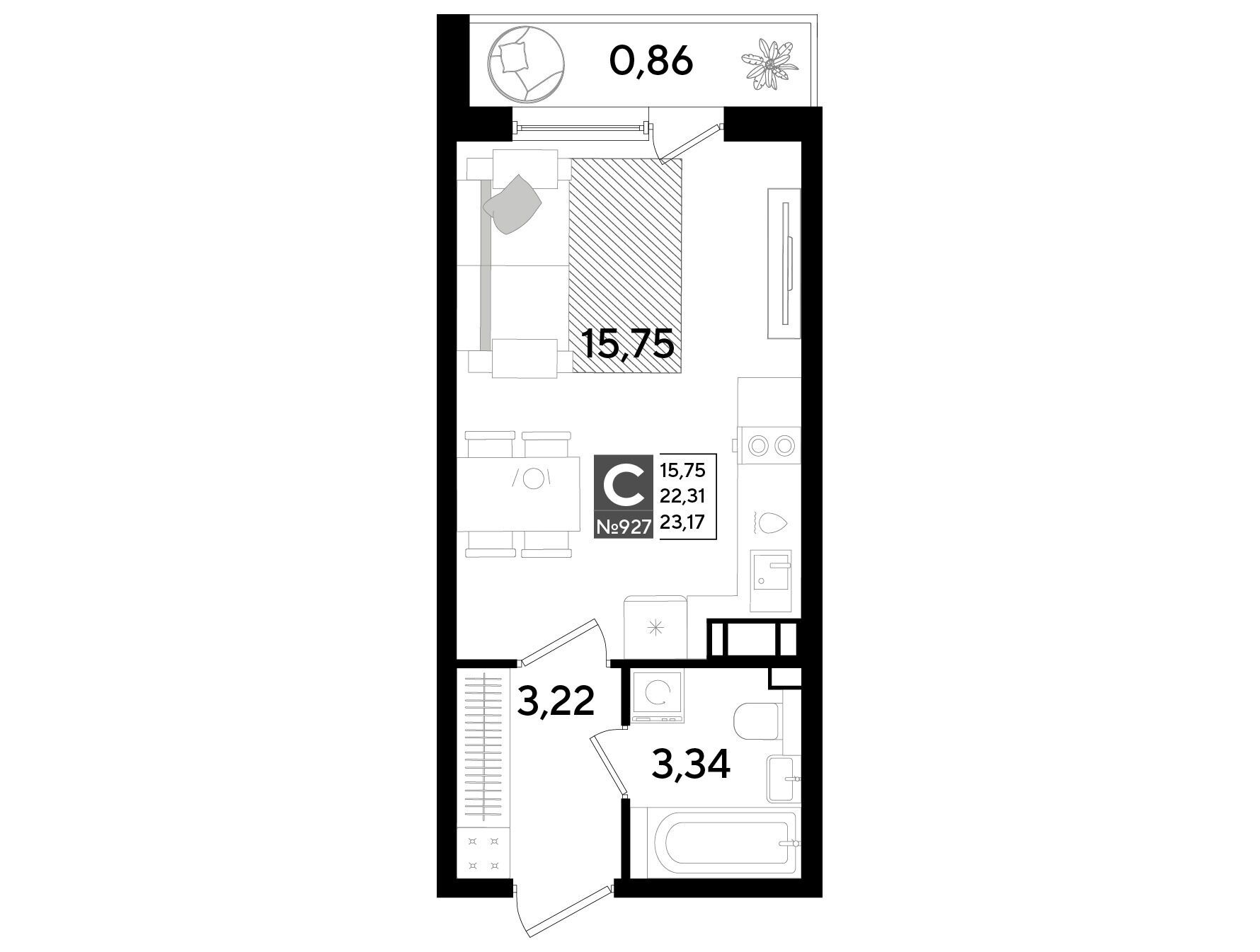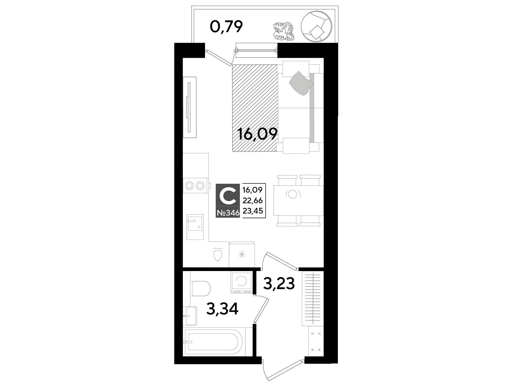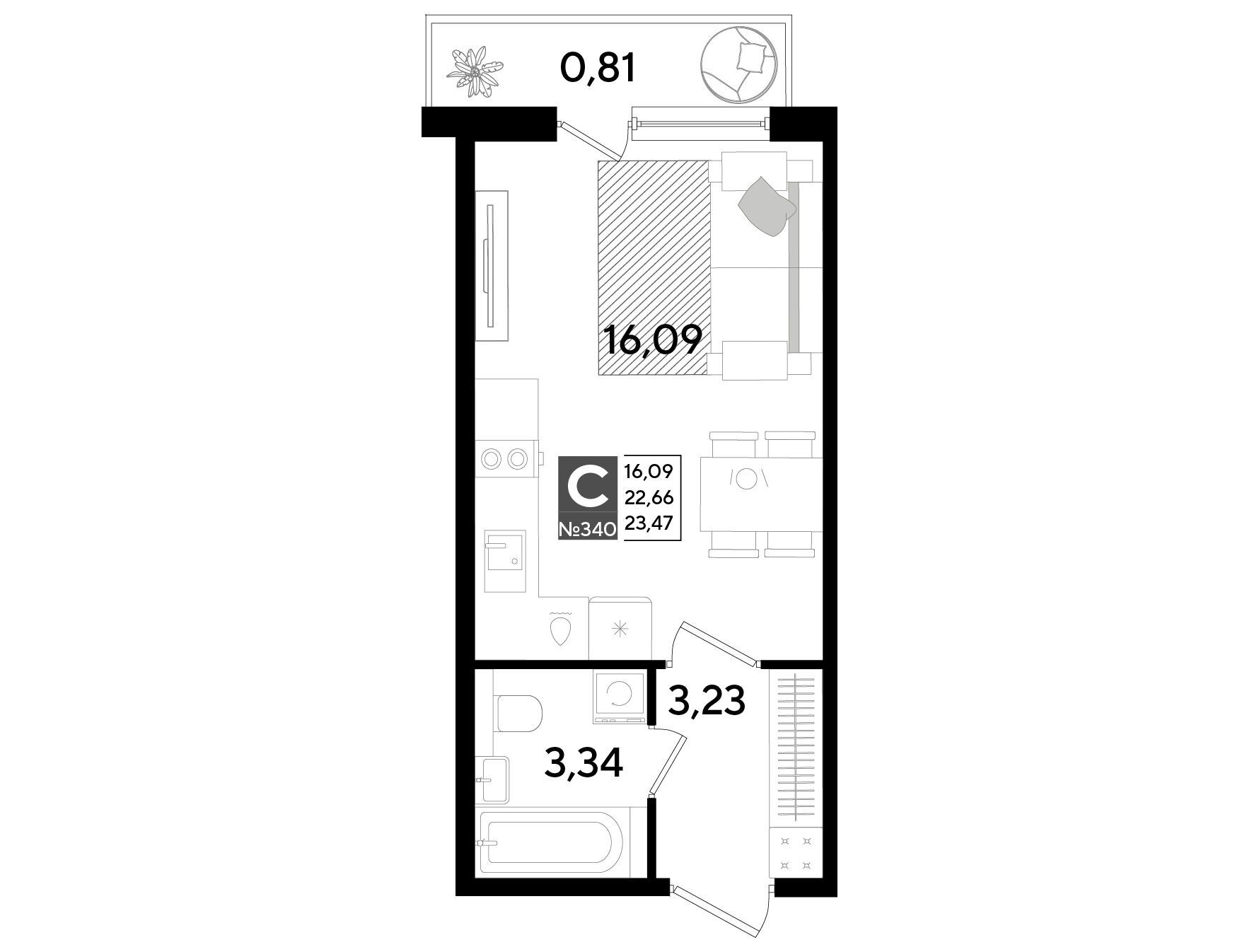 Студия, 23.18 м²