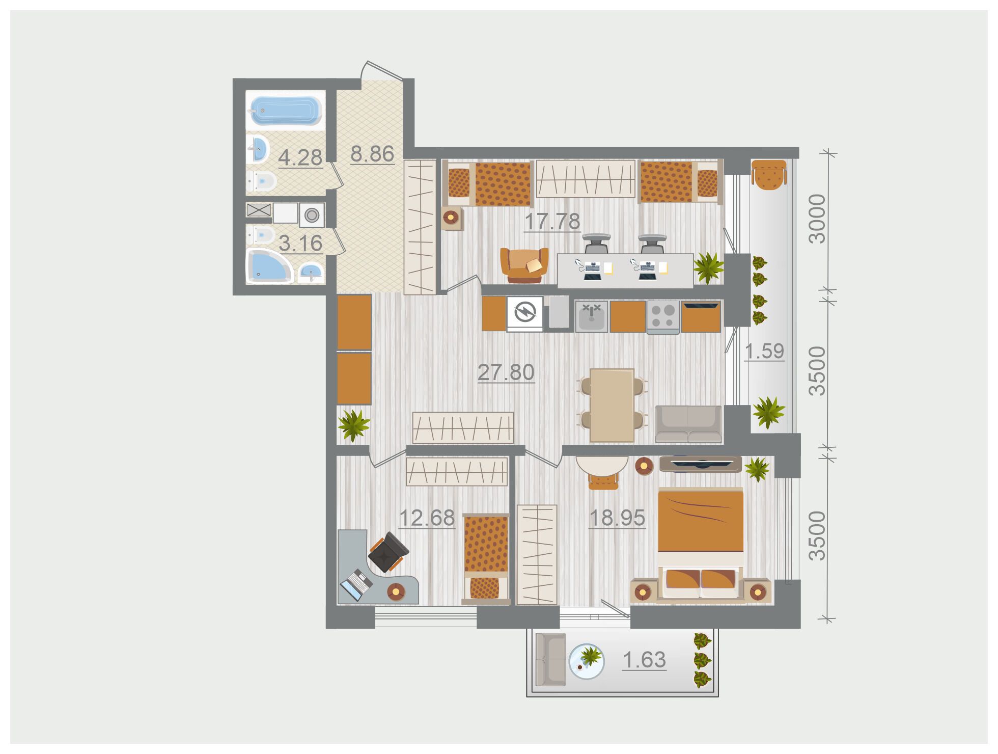3-комнатная квартира, 95.95 м², 4 из 9 эт.