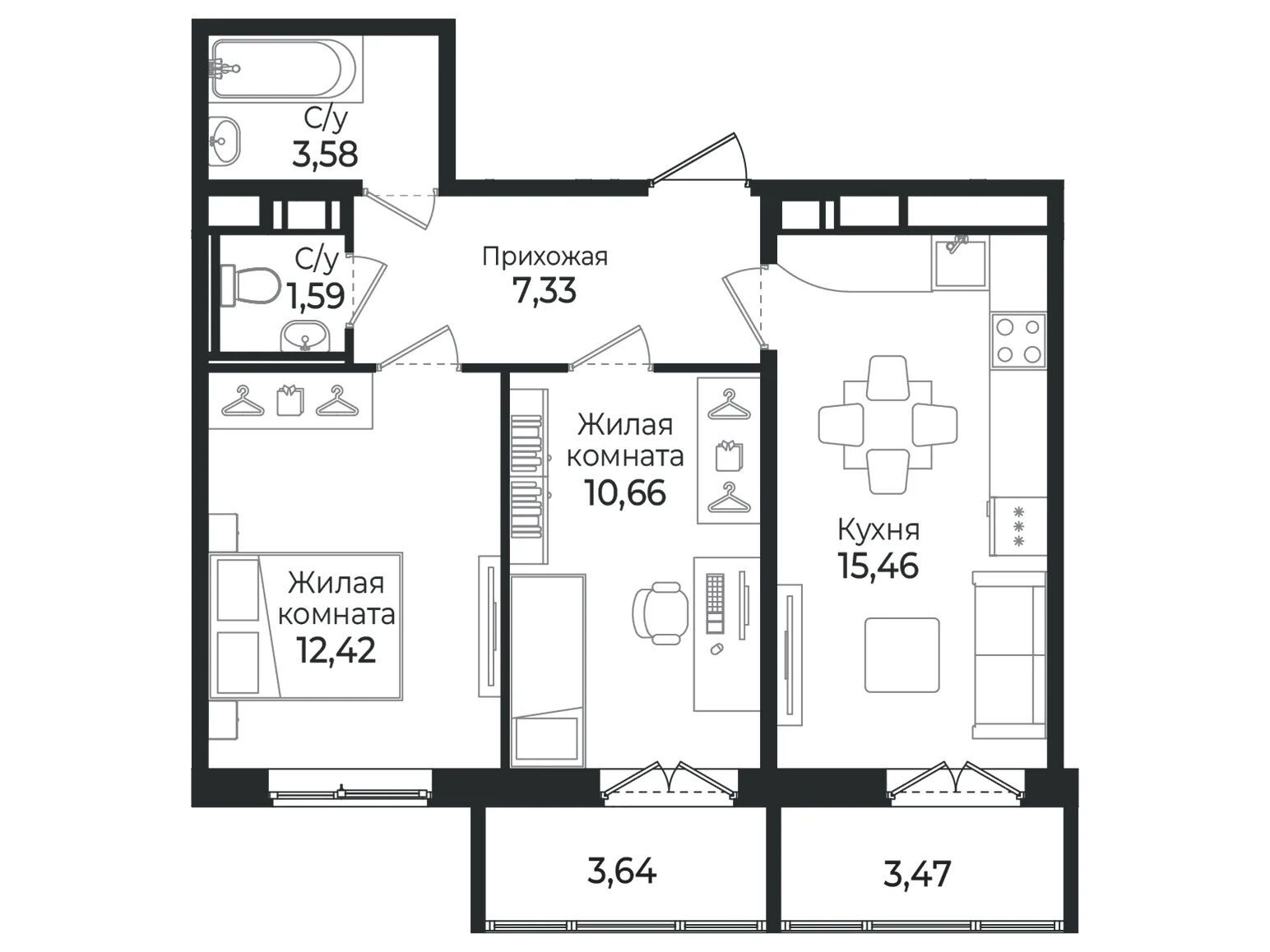 2-комнатная, 70.51 м²