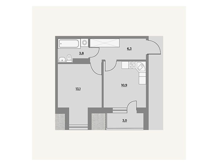 1-комнатная, 40.50 м²