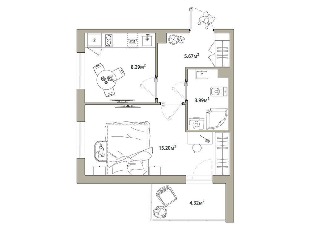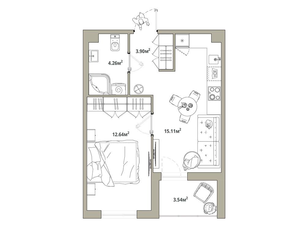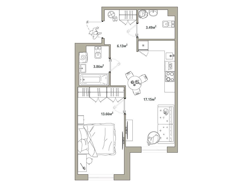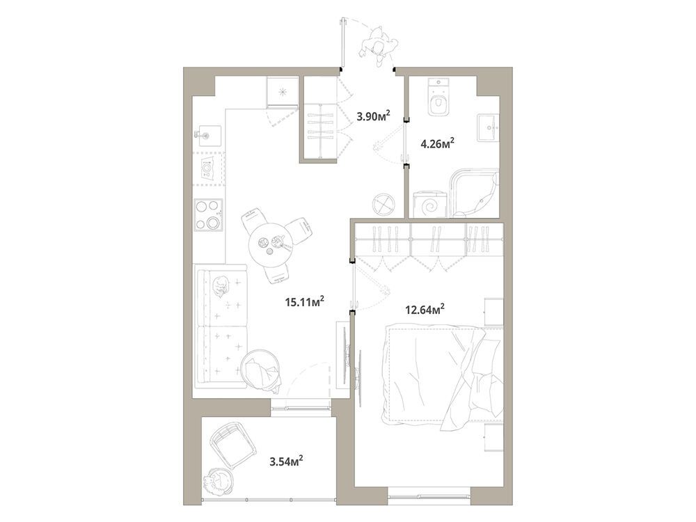 1-комнатная, 35.88 м²