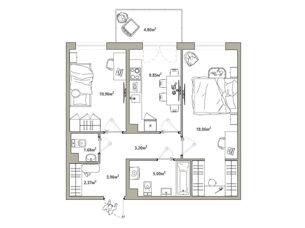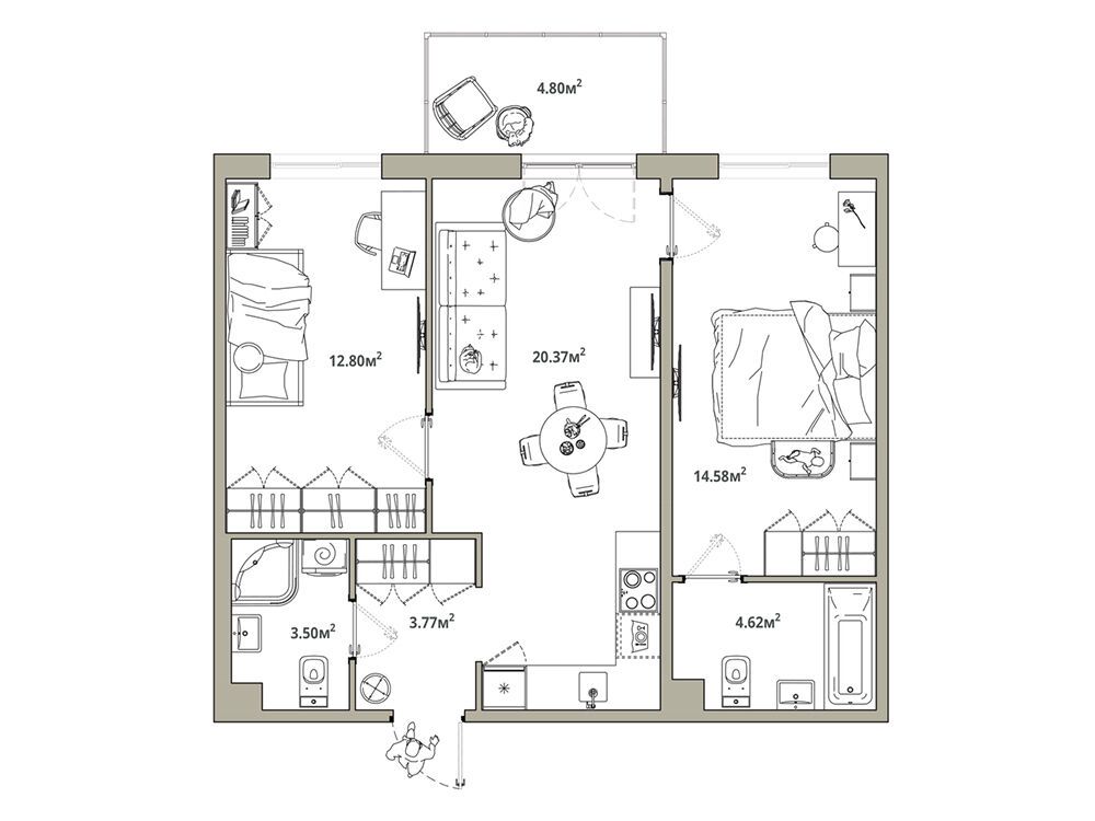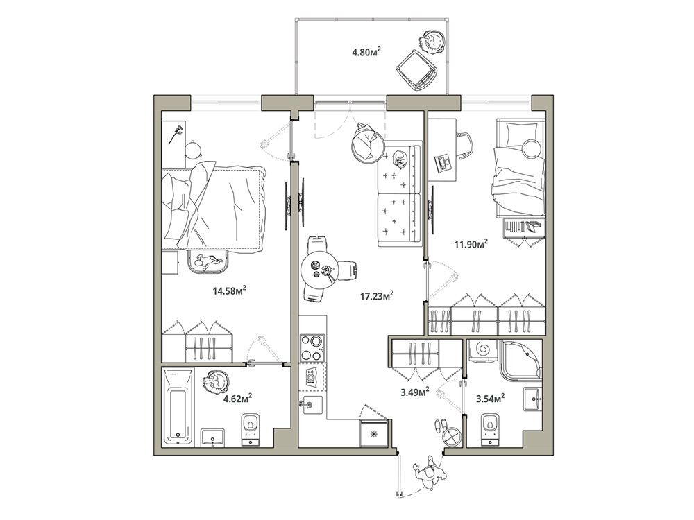 2-комнатная, 59.64 м²