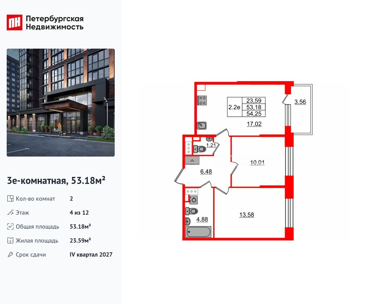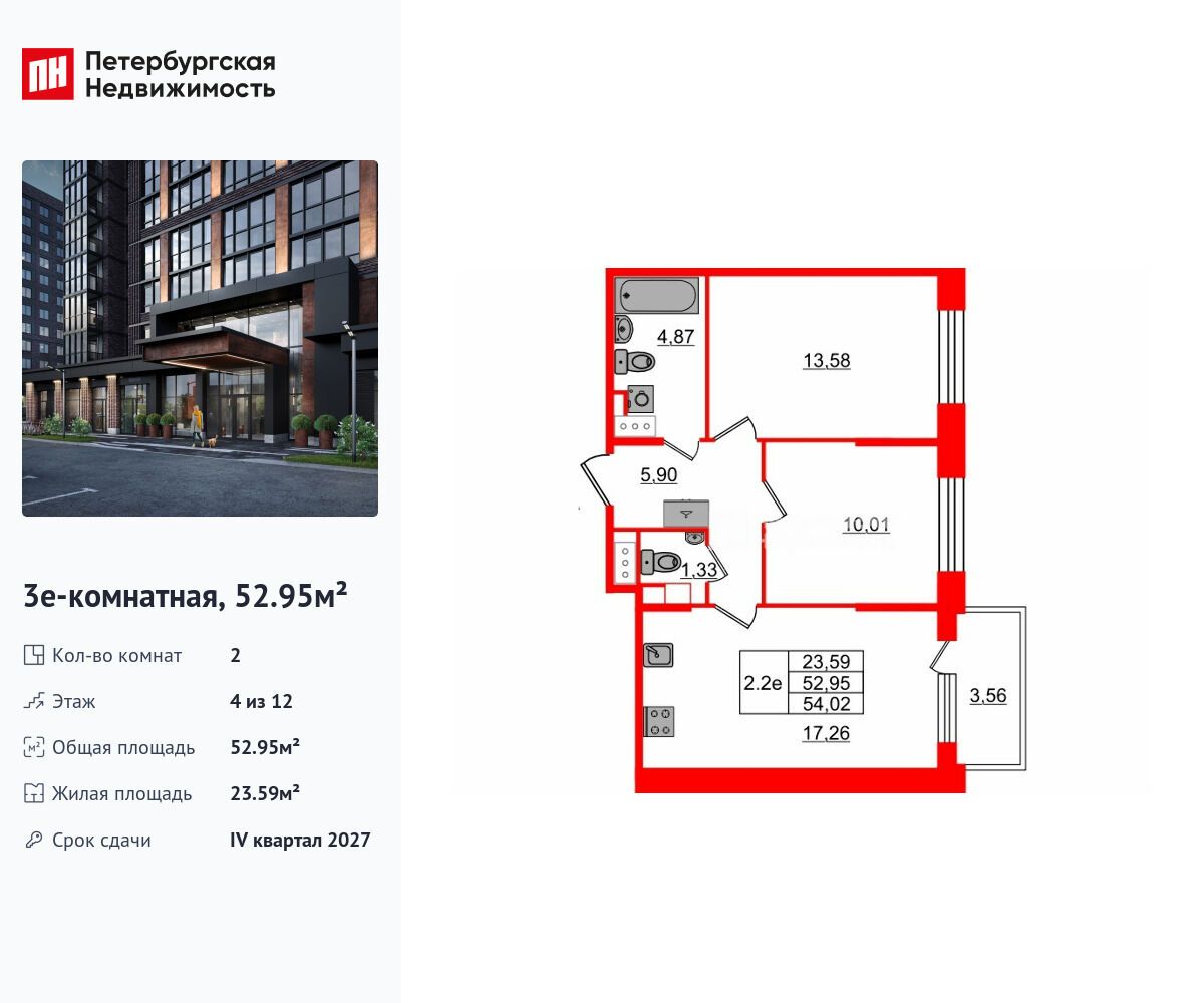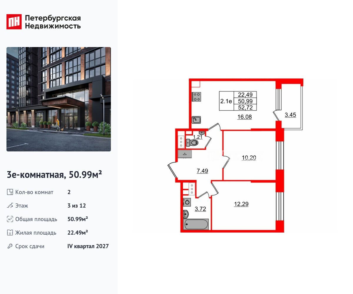2-комнатная квартира, 50.74 м², 11 из 14 эт.