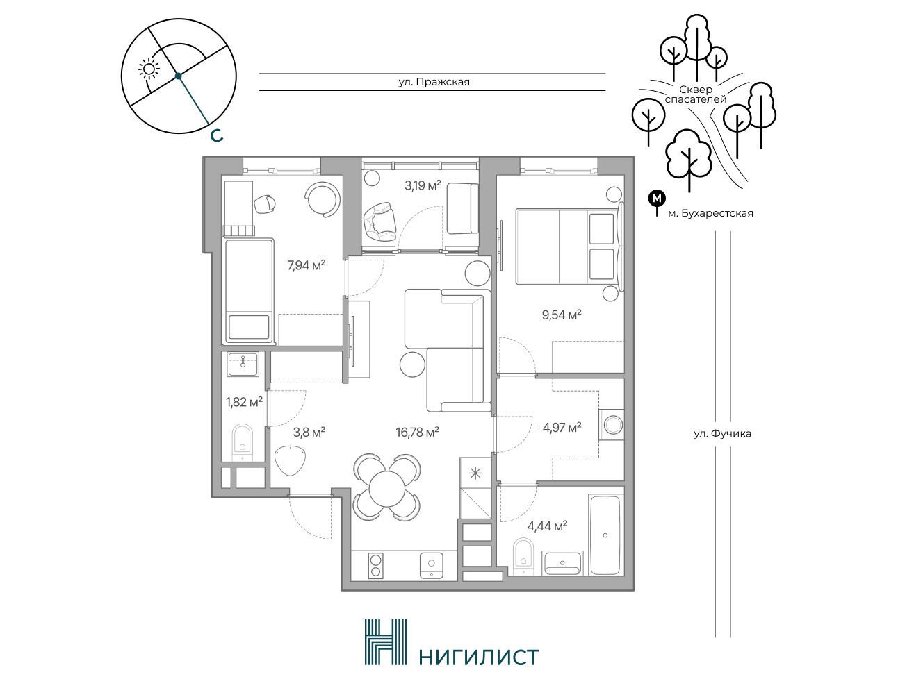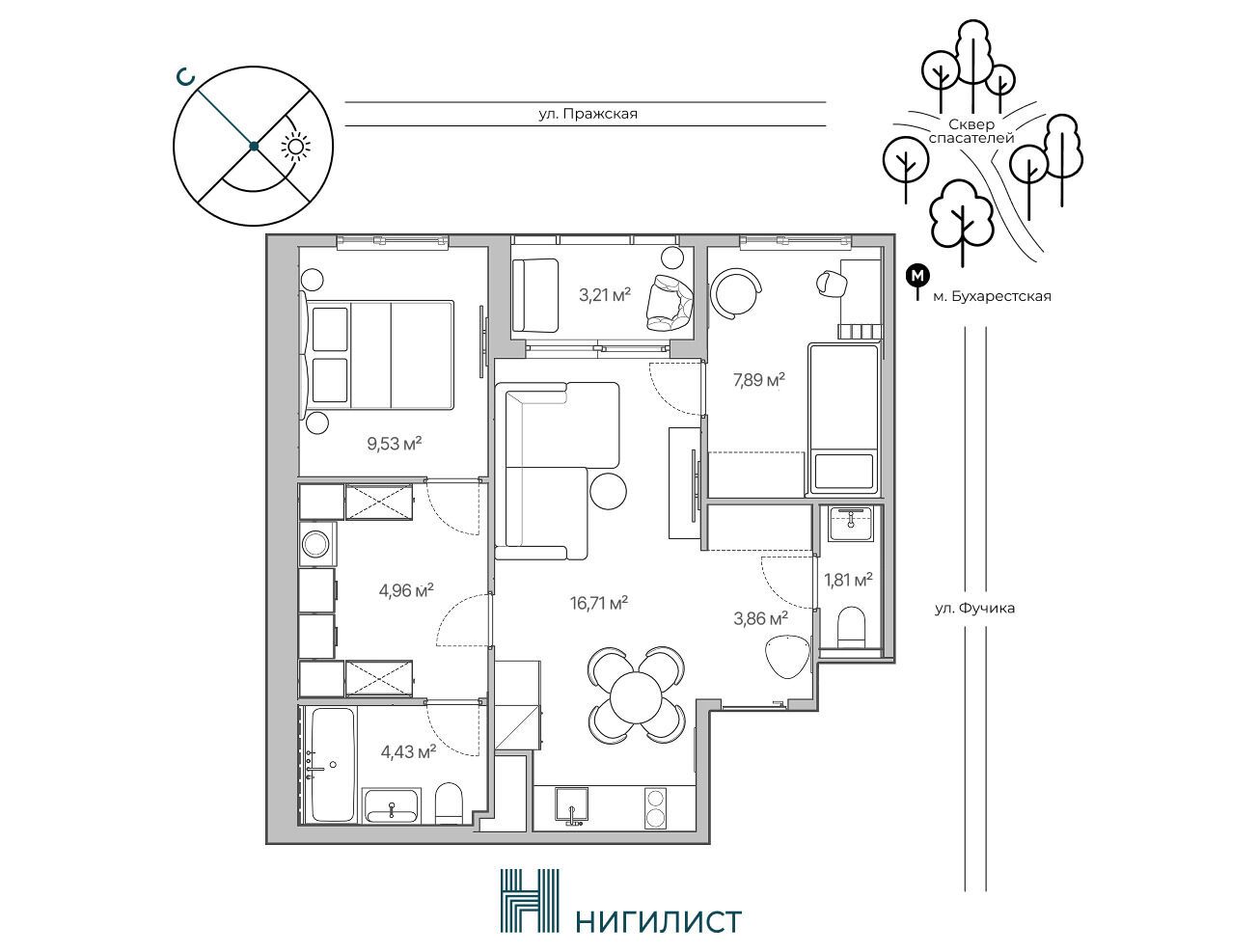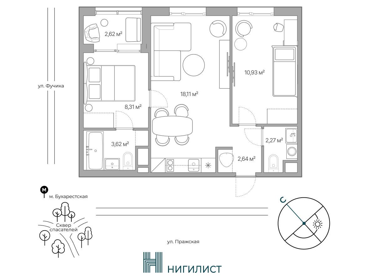 2-комнатная квартира, 50.78 м², 10 из 13 эт.