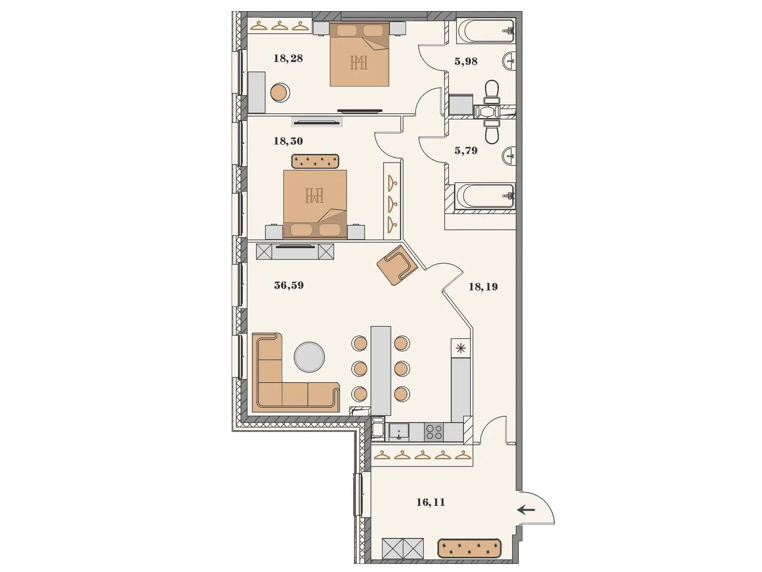 2-комнатная квартира, 119.24 м², 5 из 7 эт.