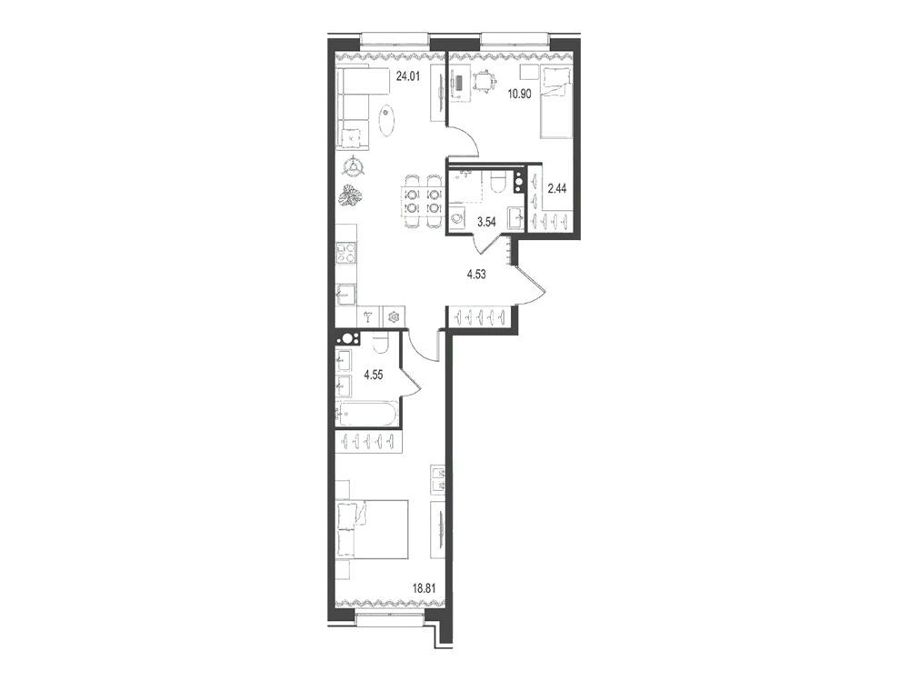 2-комнатная квартира, 71.77 м², 5 из 11 эт.