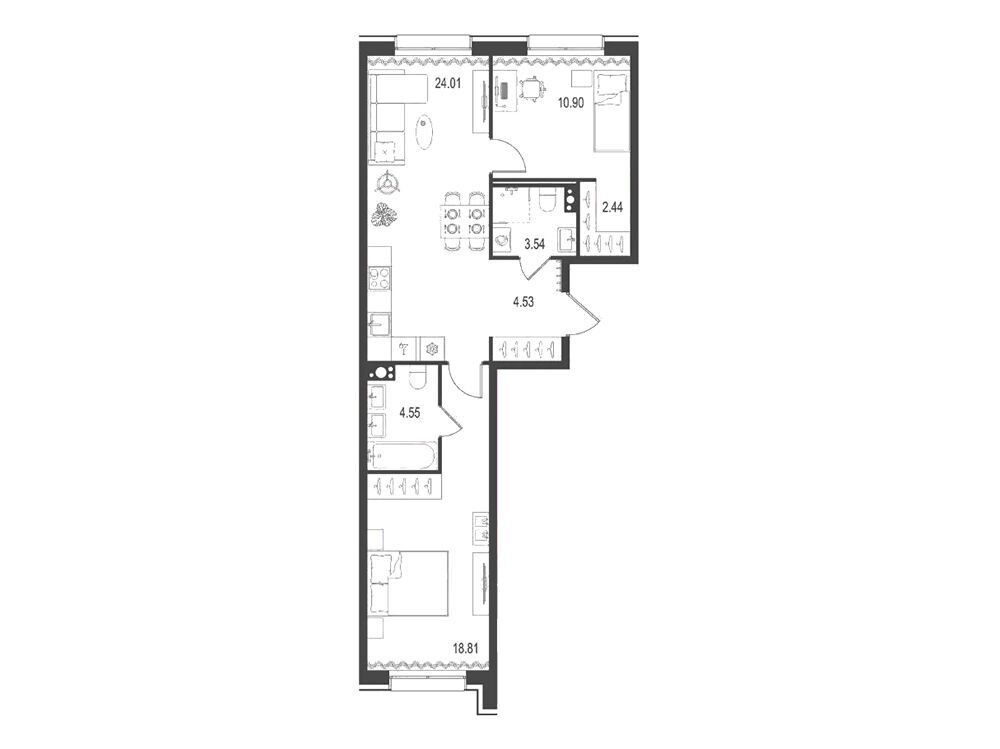 2-комнатная квартира, 68.78 м², 6 из 11 эт.