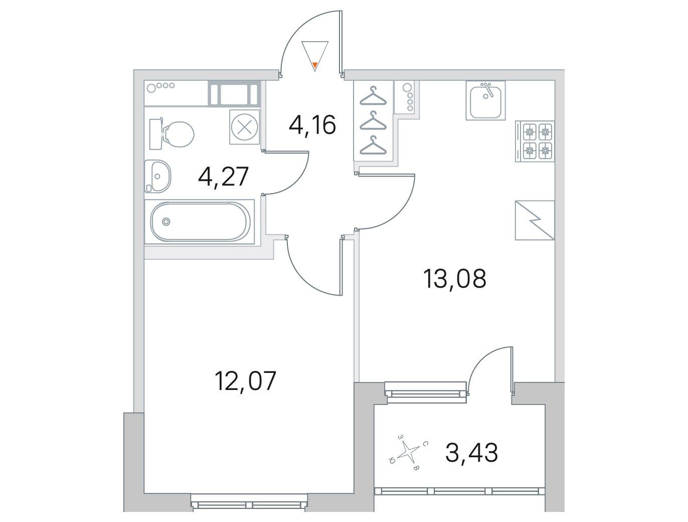 1-комнатная квартира, 36.61 м², 1 из 5 эт.