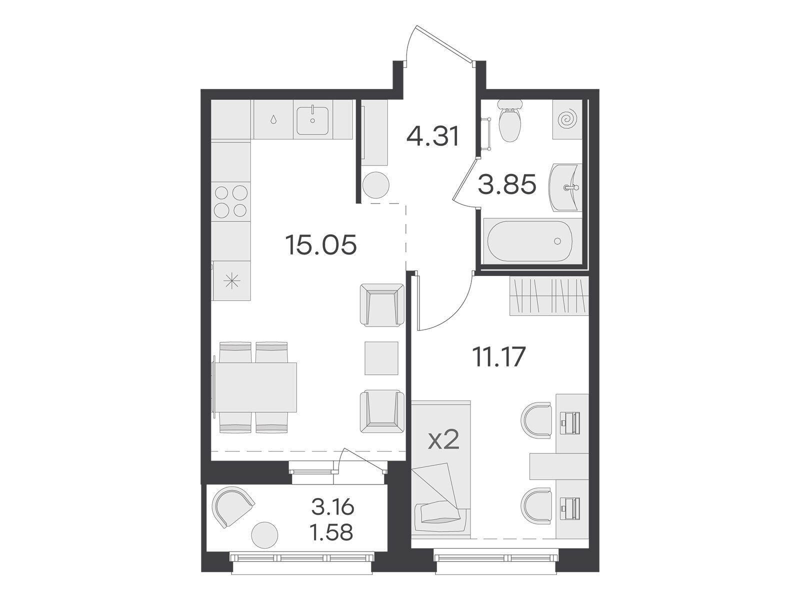 1-комнатная квартира, 37.04 м², 15 из 15 эт.