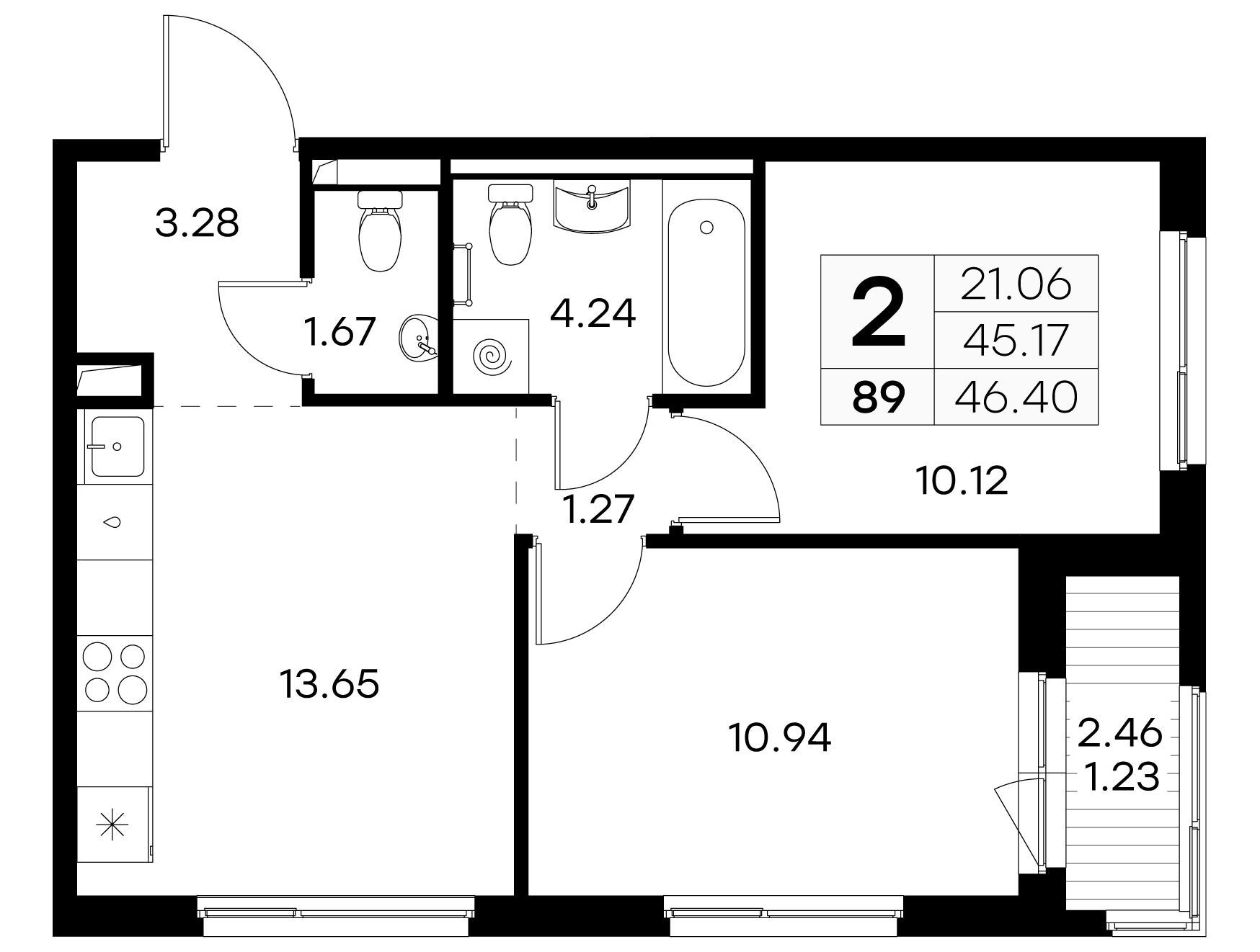 2-комнатная, 61.08 м²