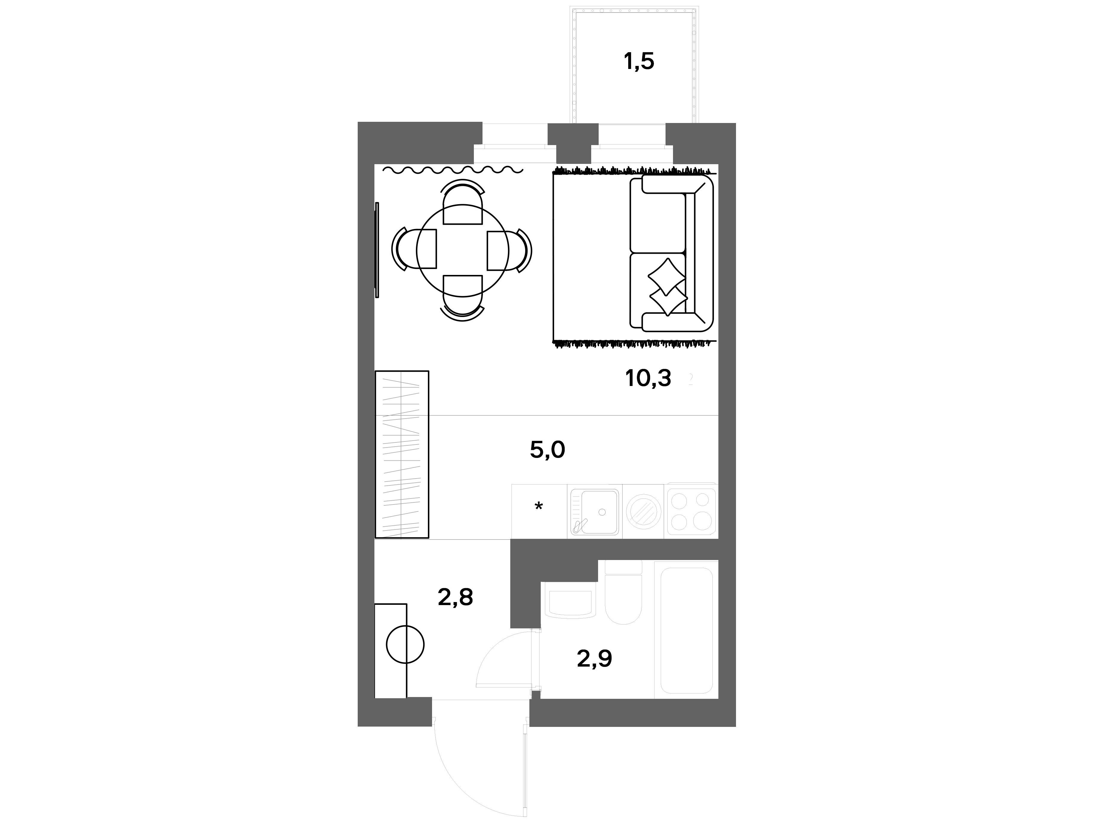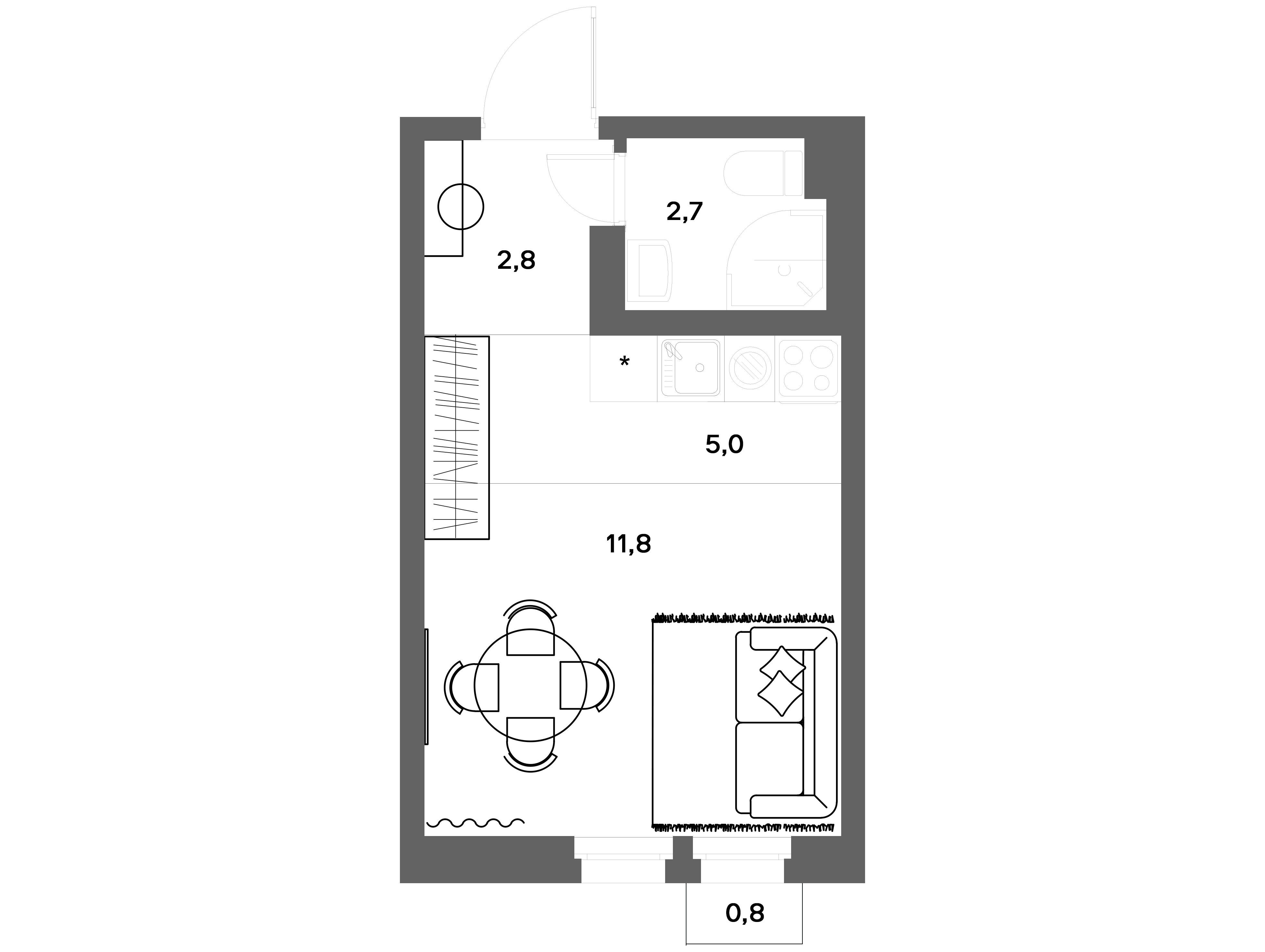 1-комн. квартира, 21.24 м²