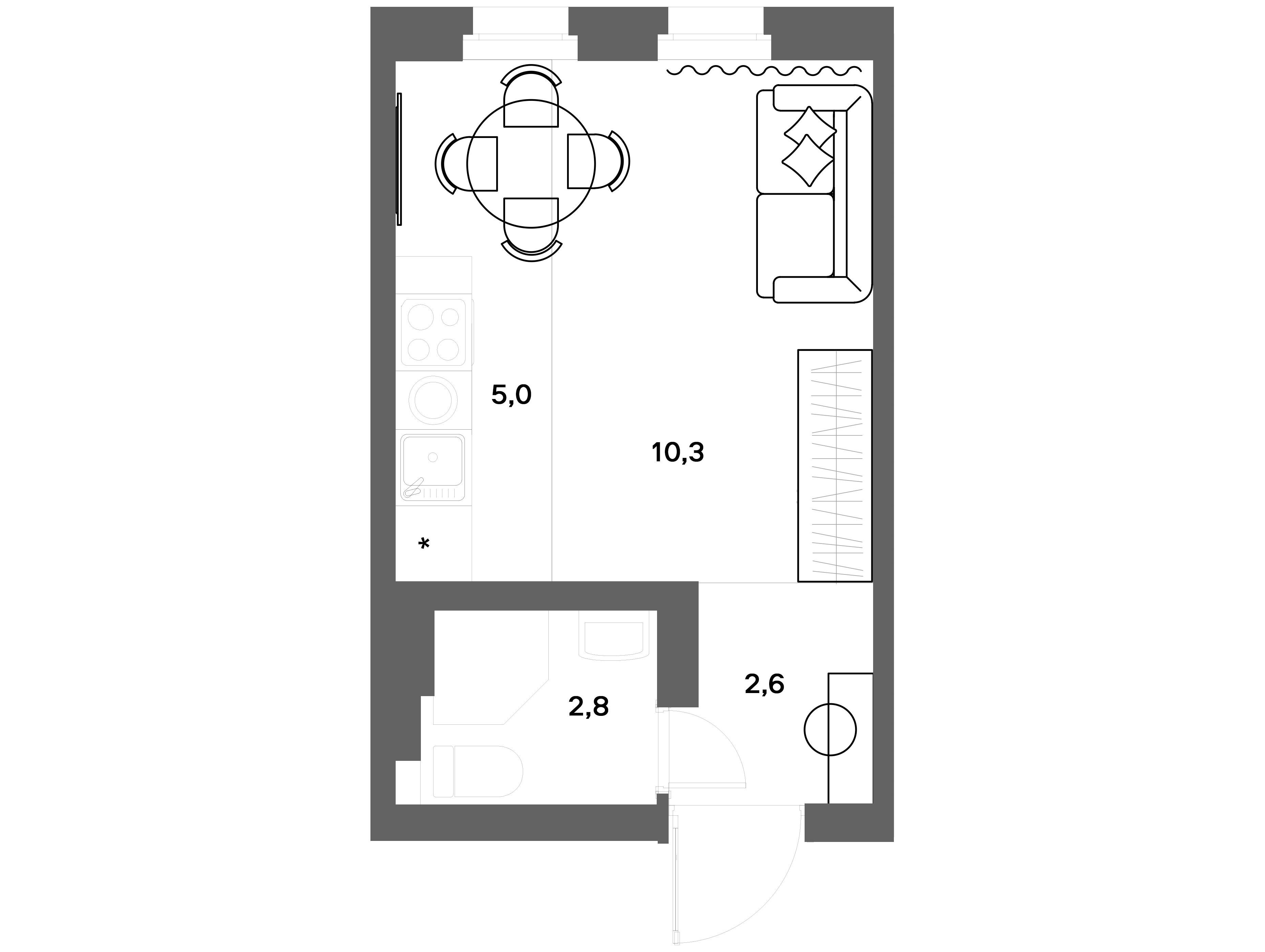 1-комнатная, 21.00 м²