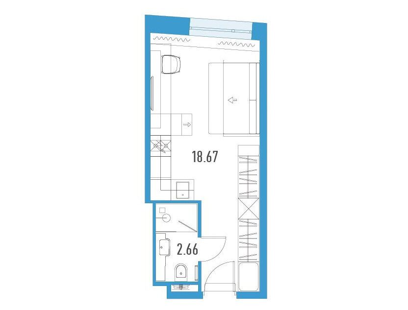 Студия, 21.22 м²