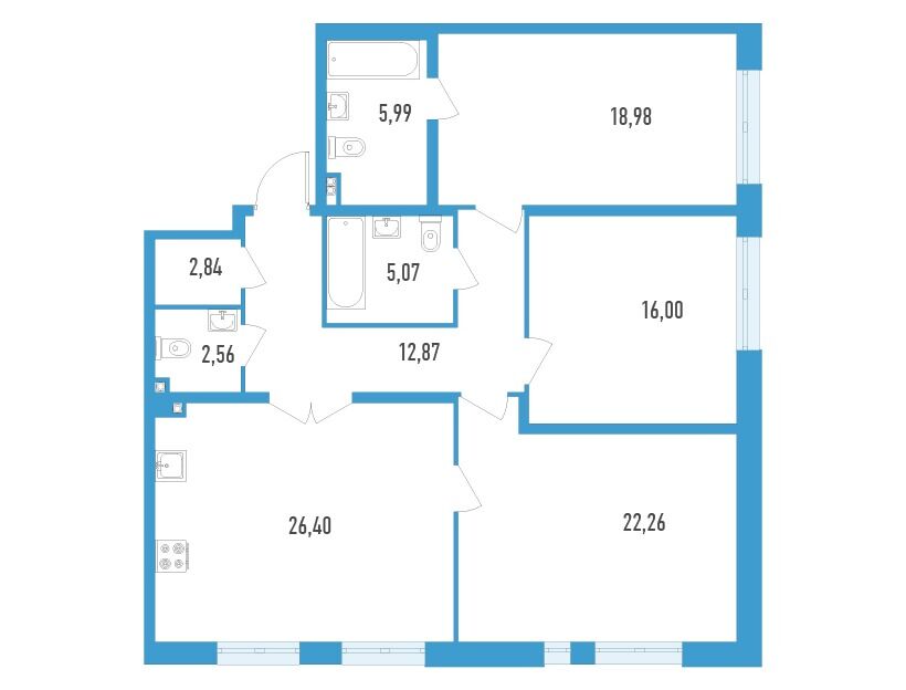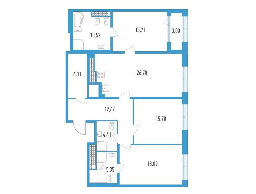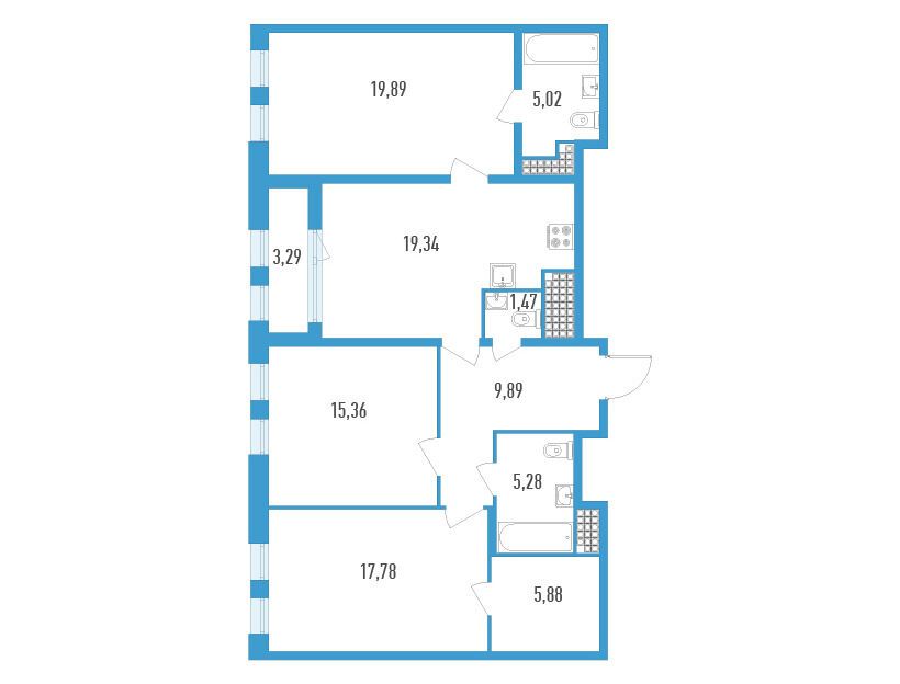3-комнатная квартира, 104.66 м², 17 из 23 эт.